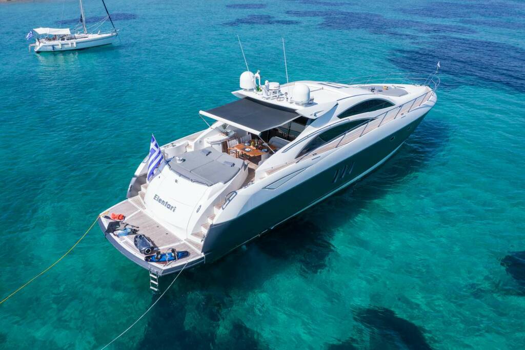 Motor Motor yacht ELENTARI is a 22.25m (72') sporty shape Sunseeker. She was delivered from the shipyard in 2009 and was fully refurbished in 2021. She can accommodate six guests in three cabins plus an onboard crew of three. ELENTARI’s sporty shape offers exciting top-speed cruising. Guests can choose from the sun pads on the foredeck which catch the sun all day or the aft deck dining space where they can enjoy a leisurely al fresco meal. The swim platform is reached from two staircases on either side of the aft deck and offers guests convenient access to the water.
