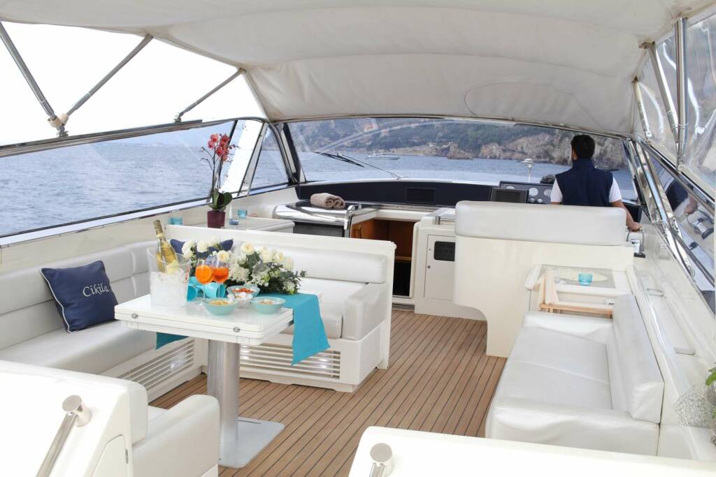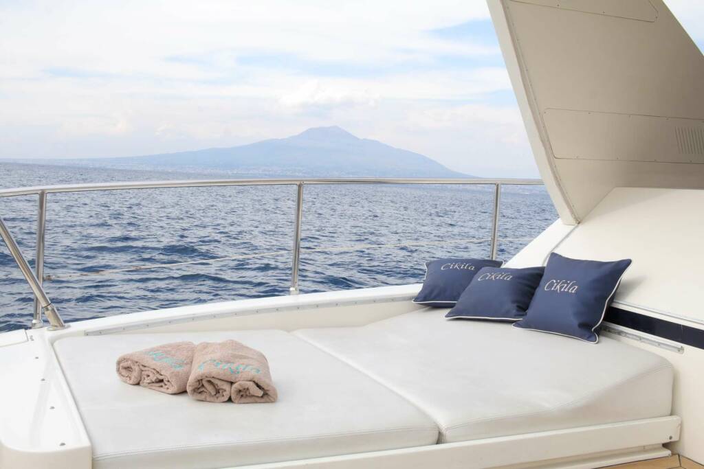 Luxus-Motoryacht CIKILA , Baujahr 2000 liegt in W. Med -Naples/Sicily, W. Med -Riviera/Cors/Sard. vor Anker. Sie hat 3 Kabinen, bietet Platz für 8 Personen.