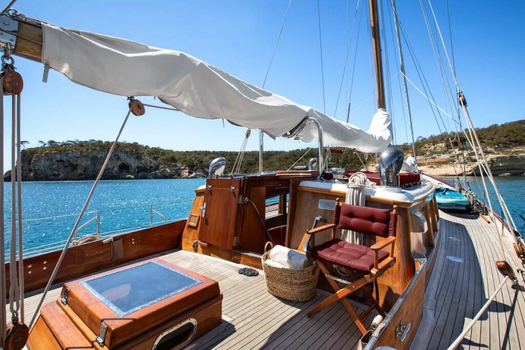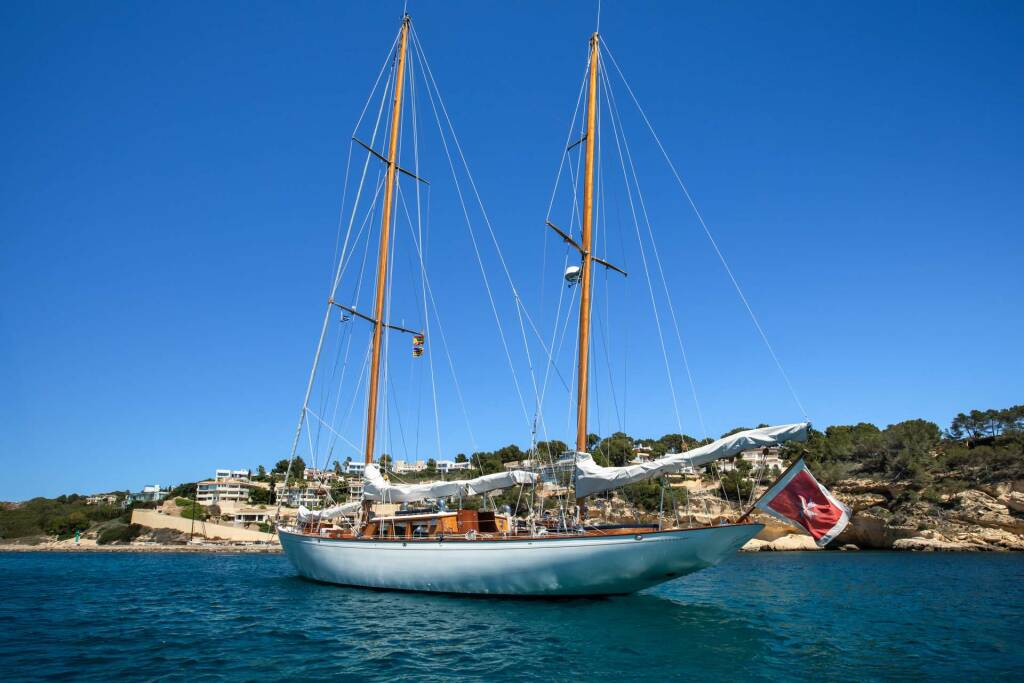 Luxus-Segelyacht GAEL I, Baujahr 1962 liegt in W. Med -Naples/Sicily, W. Med -Riviera/Cors/Sard. vor Anker. Sie hat 3 Kabinen, bietet Platz für 6 Personen.