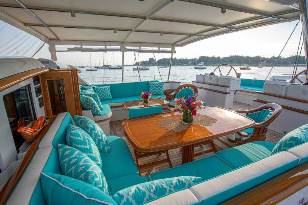 Luxus-Segelyacht WHISPER, Baujahr 2003 liegt in USA - New England vor Anker. Sie hat 3 Kabinen, bietet Platz für 6 Personen.