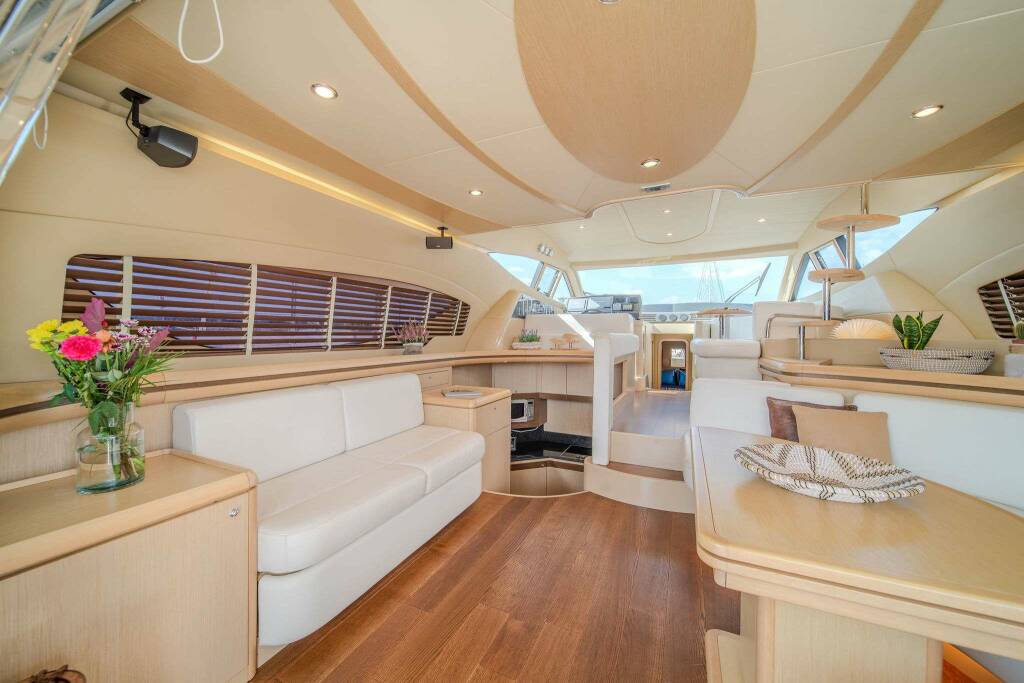 Refit 2023: re-upholstery of all interior and exterior sofas & cushions | Refit 2023: new interior salon cushion covers | first season as a commercial charter yacht