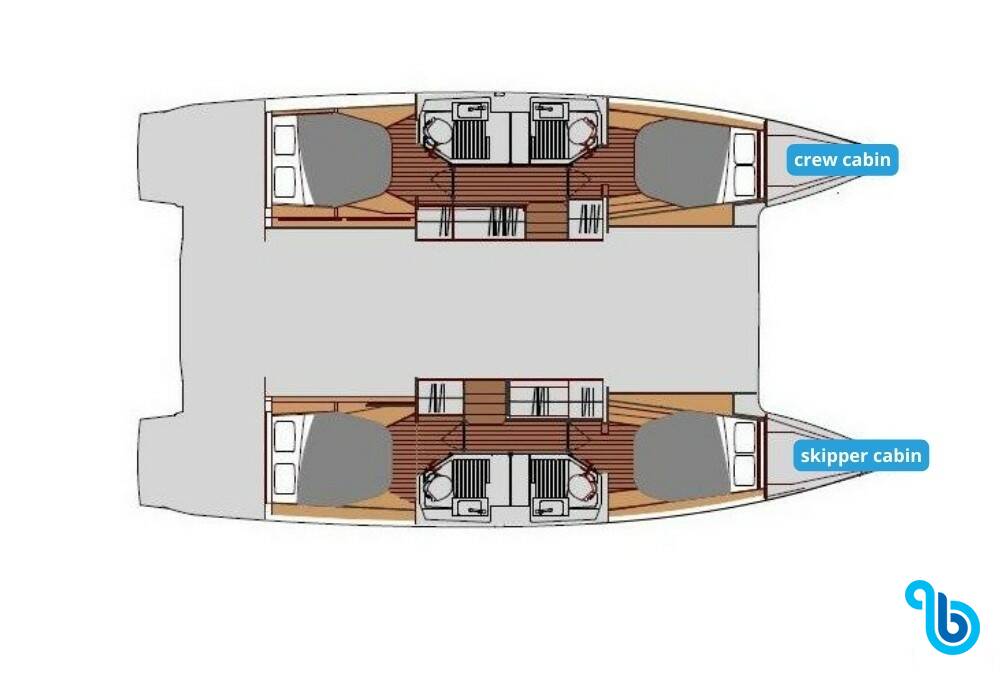 Der Skipper ist nicht im Preis des Bootes enthalten. Es ist möglich, den Skipper während des Bestätigungsverfahrens hinzuzufügen: Die Kosten liegen in der Regel zwischen 180 € und 250 € pro Tag; der Skipper benötigt eine eigene Kabine. Nach Rücksprache mit einem BeBlue-Betreiber ist es möglich, dass der Skipper in der Dinette (zentraler Aufenthaltsraum) schläft.