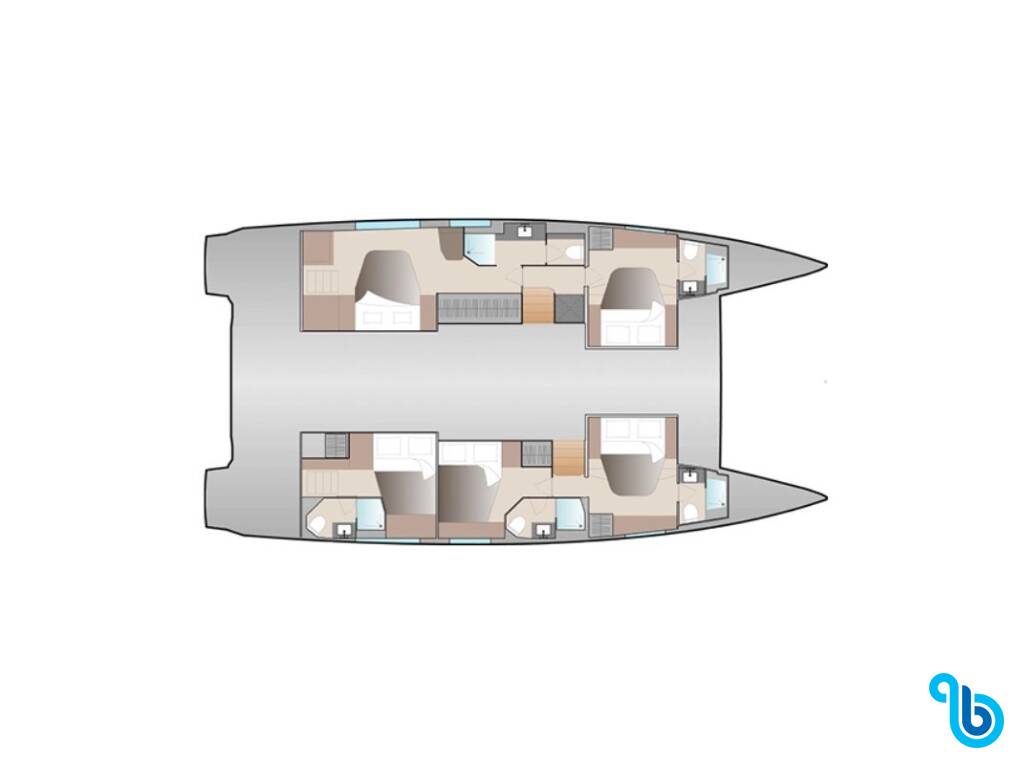 Der Aura 51 COSMOS (Katamaran), wurde ins Leben gerufen 2023 und hat seinen Sitz in Split & Umgebung im Yachthafen der Stadt Trogir, Yachtclub Seget (Marina Baotić). Der Rumpf ist ausgestattet mit 5 + 1 hütten und 5 toilette und ist für eine bequeme Unterbringung zugelassen 10 + 1 menschen .