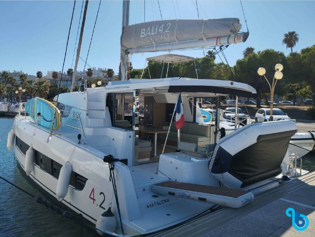 Der Bali 4.2 MATACENA (Katamaran), wurde ins Leben gerufen 2025 und hat seinen Sitz in Provence-Alpes-Côte d'Azur im Yachthafen der Stadt Cogolin Marines. Der Rumpf ist ausgestattet mit 4 hütten und 4 toilette und ist für eine bequeme Unterbringung zugelassen 8 menschen .