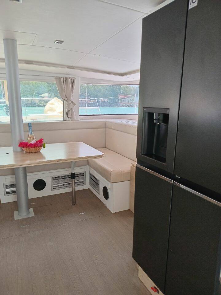 "Un buon catamarano a un ottimo prezzo con alcune lacune: cuscini in materiale plastico usurati e spesso mancanti che saltano all'occhio degli ospiti, A/C assente (rispetto a molti altri della flotta). Frigo grande e potente. Batterie che richiedevano ricarica tramite motore di almeno 4h giorno (no generatore). Dissalatore scarso ma funzionante. Indicatore del vento solo in dinette."