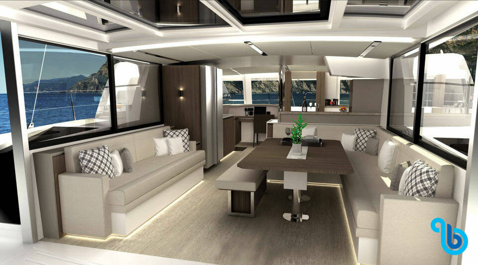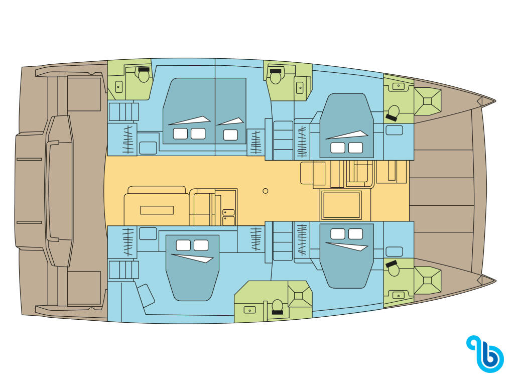 "Ottimo catamarano, comodo, spazioso e perfettamente attrezzato e corredato. Impianti di bordo, vele, salpa ancore in condizioni molto buone, qualche problema col generatore che è stato risolto prima della partenza; bagni elettrici ben funzionanti, buon livello di pulizia. Anche la cabina con i letti a castello è abbastanza spaziosa ma non adatta ad adulti più alti di 180cm. Unica pecca la cuscineria che era tutta molto usurata e macchiata: davvero un peccato per un catamarano così recente"