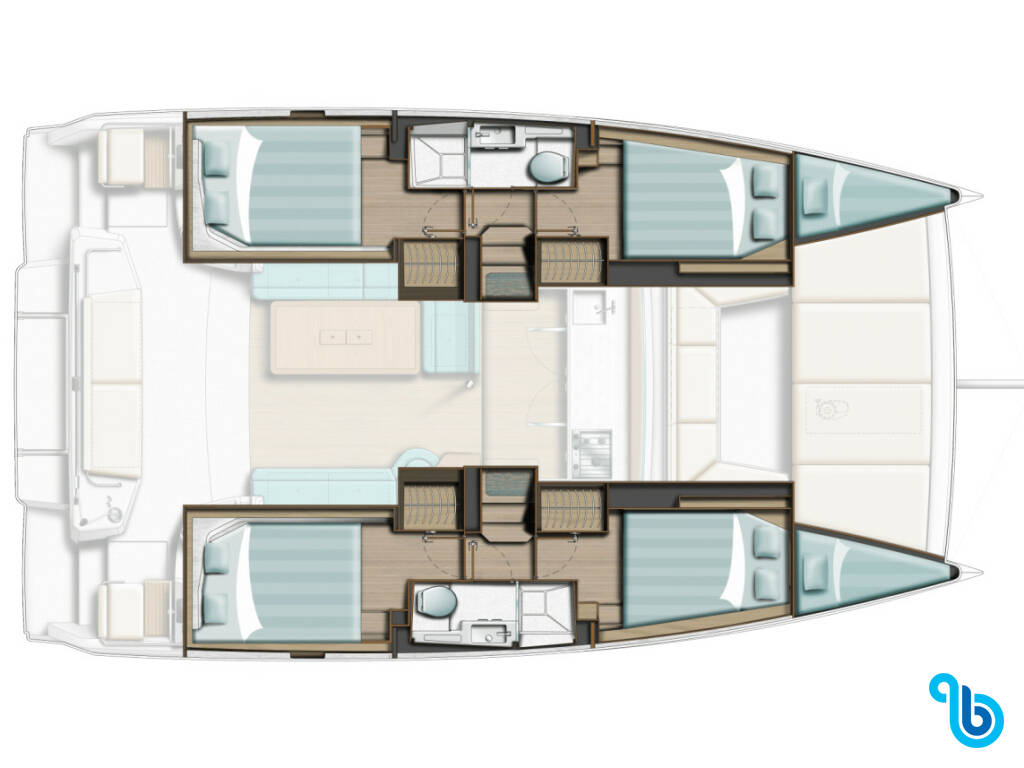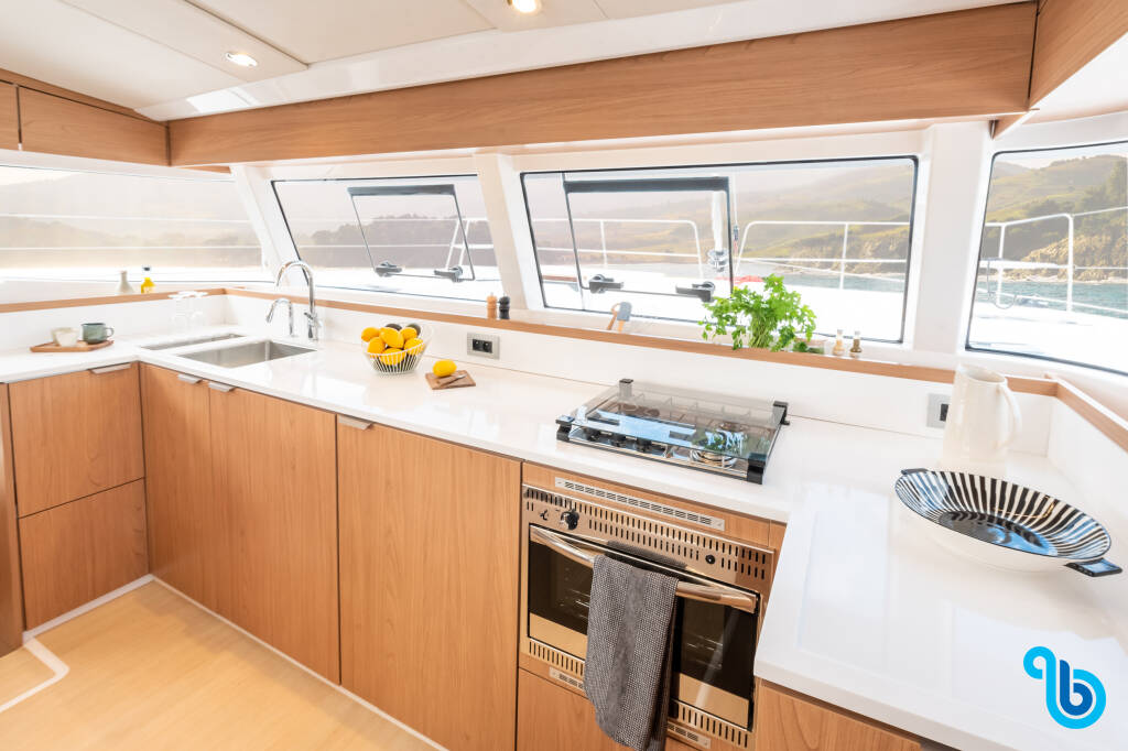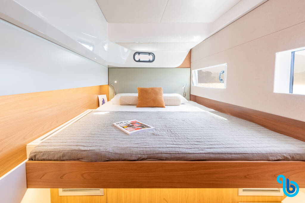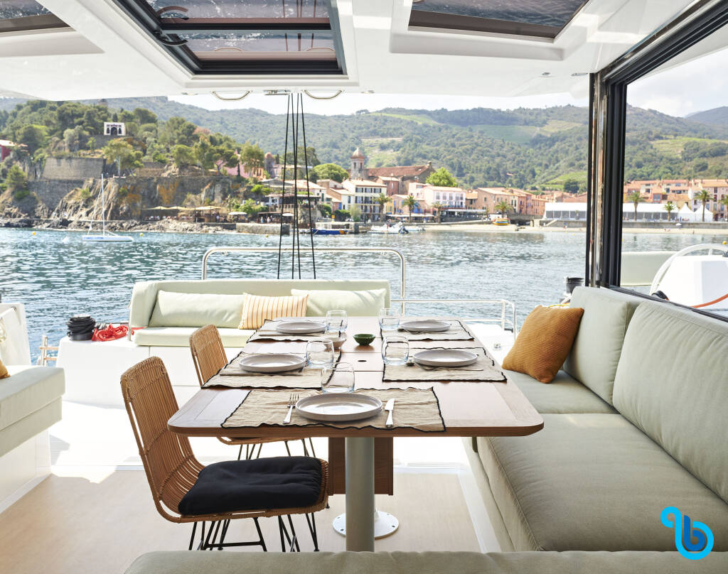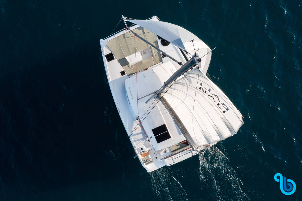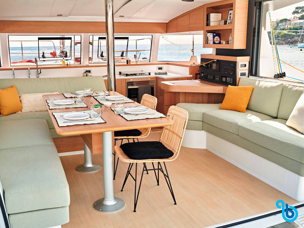 "Ottimo catamarano, nuovissimo e pieno di optional: A/C, watermaker, frigo bomba, griglia gas esterna e generatore. Presenti due lettini estraibili dentro le cabine ospiti di prua."