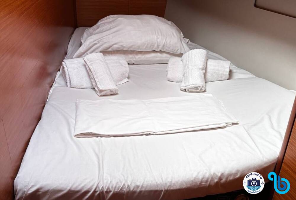 "Un buon catamarano a un ottimo prezzo con alcune lacune: cuscini in materiale plastico usurati e spesso mancanti che saltano all'occhio degli ospiti, A/C assente (rispetto a molti altri della flotta). Frigo grande e potente. Batterie che richiedevano ricarica tramite motore di almeno 4h giorno (no generatore). Dissalatore scarso ma funzionante. Indicatore del vento solo in dinette."