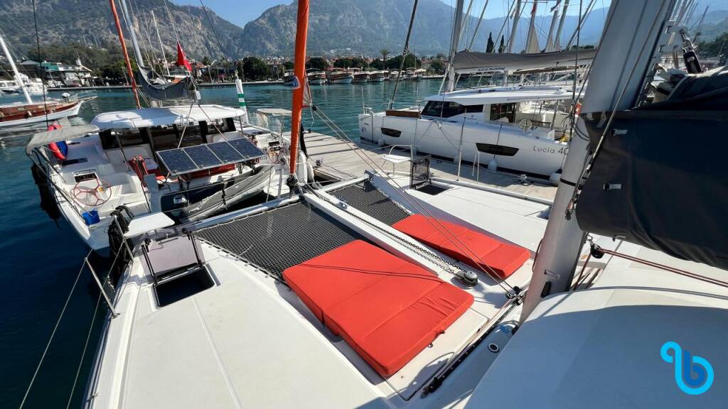 Der Excess 11 Smota (Katamaran), wurde ins Leben gerufen 2022 und hat seinen Sitz in Türkei Fethiye / Gocek im Yachthafen der Stadt Göcek. Der Rumpf ist ausgestattet mit 4 + 2 hütten und 2 toilette und ist für eine bequeme Unterbringung zugelassen 8 + 2 menschen .