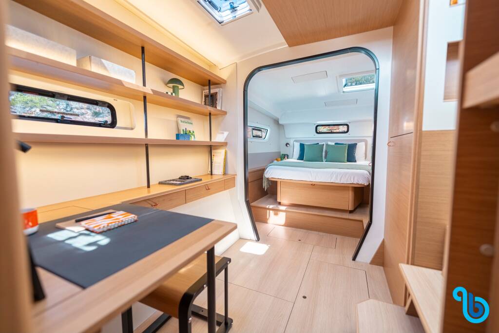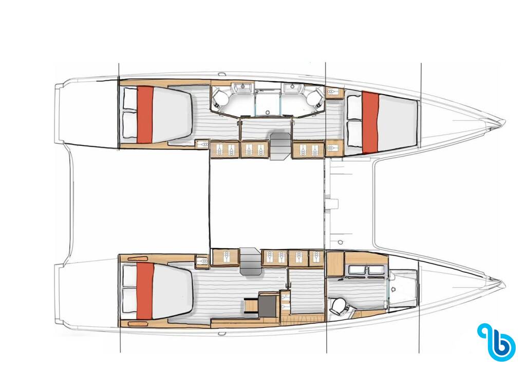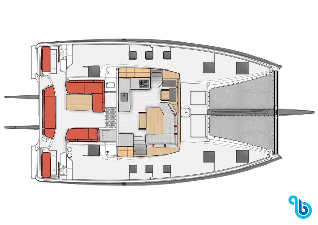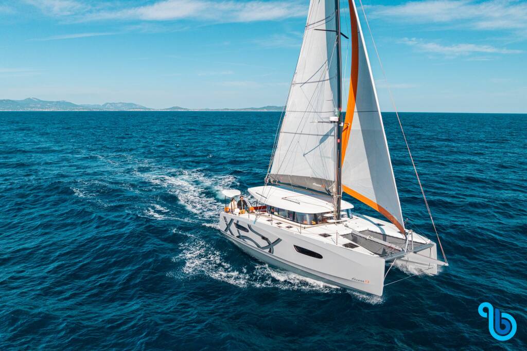 Der Excess 13 AQUILA (Katamaran), wurde ins Leben gerufen 2026 und hat seinen Sitz in Ionisches Meer im Yachthafen der Stadt Lefkas main port. Der Rumpf ist ausgestattet mit 4 hütten und 4 toilette und ist für eine bequeme Unterbringung zugelassen 7 menschen .