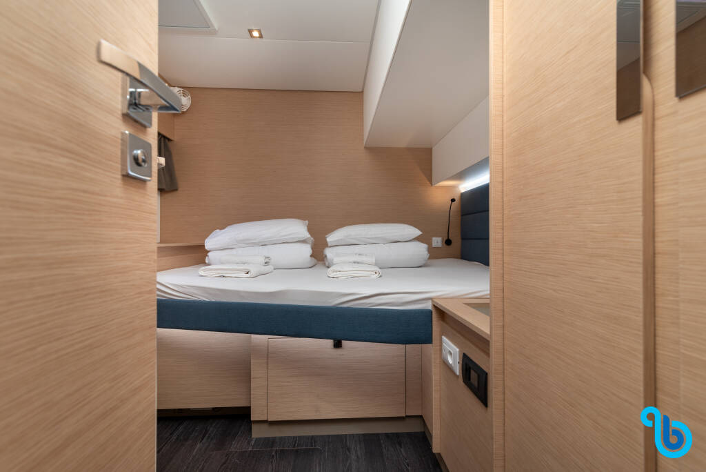 Der Skipper ist nicht im Preis des Bootes enthalten. Es ist möglich, den Skipper während des Bestätigungsverfahrens hinzuzufügen: Die Kosten liegen in der Regel zwischen 180 € und 250 € pro Tag; der Skipper benötigt eine eigene Kabine. Nach Rücksprache mit einem BeBlue-Betreiber ist es möglich, dass der Skipper in der Dinette (zentraler Aufenthaltsraum) schläft.
