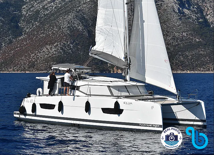 Die Fountaine Pajot Isla 40 Elia (Katamaran), wurde im Jahr 2024 vom Stapel gelassen und befindet sich in Ionisches Meer in der Stadt Lefkas, D-Marin. Der Rumpf ist mit 4 Kabinen und 4 WCs ausgestattet und ist für die bequeme Unterbringung von 8 Personen zugelassen.