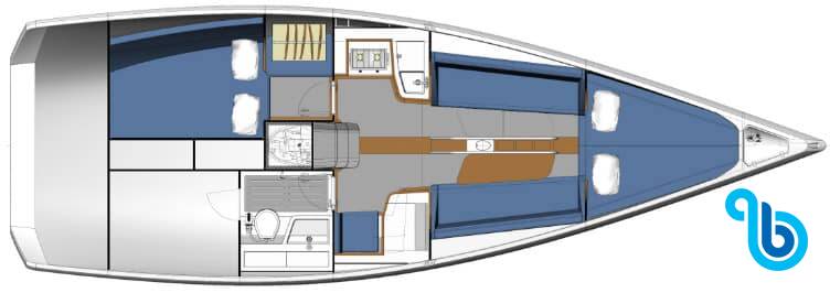 Der Skipper ist nicht im Preis des Bootes enthalten. Es ist möglich, den Skipper während des Bestätigungsverfahrens hinzuzufügen: Die Kosten liegen in der Regel zwischen 180 € und 250 € pro Tag; der Skipper benötigt eine eigene Kabine. Nach Rücksprache mit einem BeBlue-Betreiber ist es möglich, dass der Skipper in der Dinette (zentraler Aufenthaltsraum) schläft.