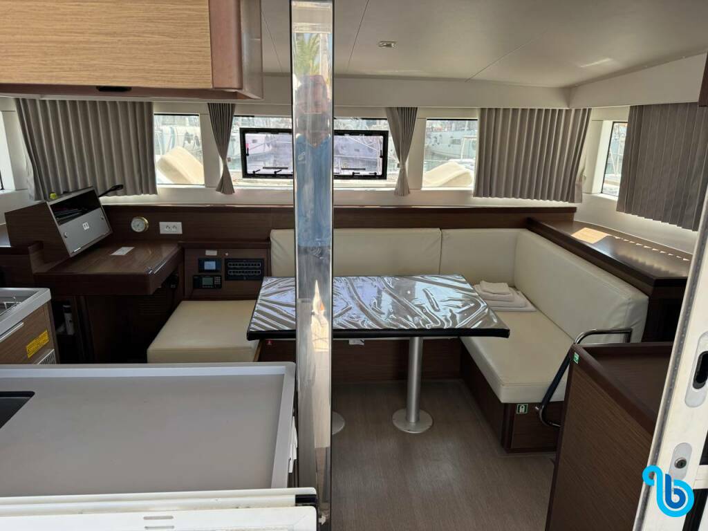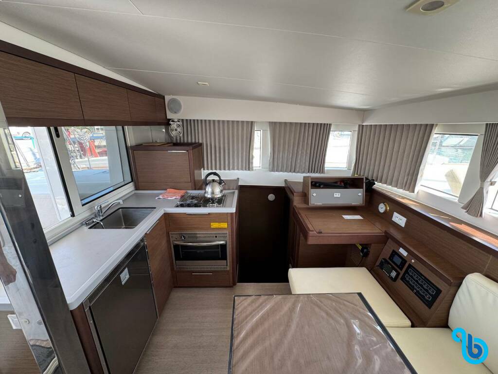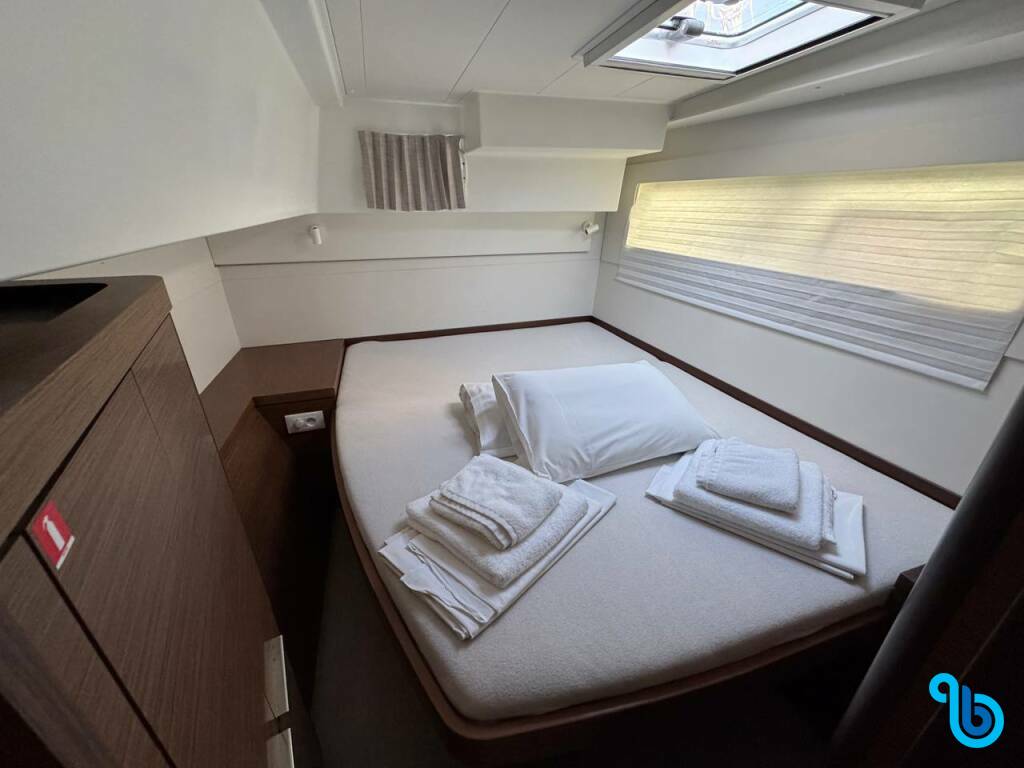 ""I 4 bagni elettrici funzionano male, così come i waste tank, il che crea agli equipaggi disagi. Impianto casse buone, frigo e cucina nella Media. Vele buone e performanti. La catena dell'ancora tende ad uscire dal rullino di plastica anteriore rendendo molto faticoso il recupero per il barbotin. ""