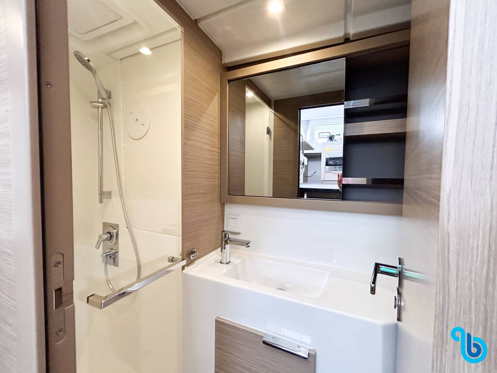 Der Lagoon 40 Oasis (Katamaran), wurde ins Leben gerufen 2025 und hat seinen Sitz in Britische Jungferninseln (BVI) im Yachthafen der Stadt BVI, Tortola, Nanny Cay Marina. Der Rumpf ist ausgestattet mit 3 hütten und 2 toilette und ist für eine bequeme Unterbringung zugelassen 6 menschen .