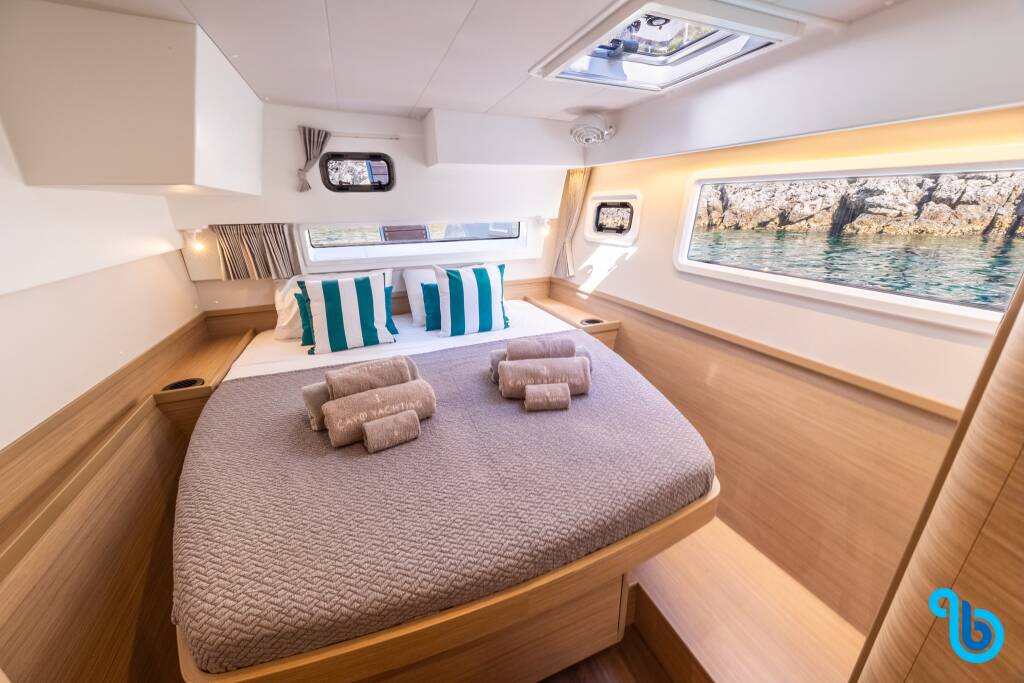 Der Lagoon 42 INSPIRE (Katamaran), wurde ins Leben gerufen 2026 und hat seinen Sitz in Ionisches Meer im Yachthafen der Stadt Lefkas main port. Der Rumpf ist ausgestattet mit 4 hütten und 4 toilette und ist für eine bequeme Unterbringung zugelassen 7 menschen .