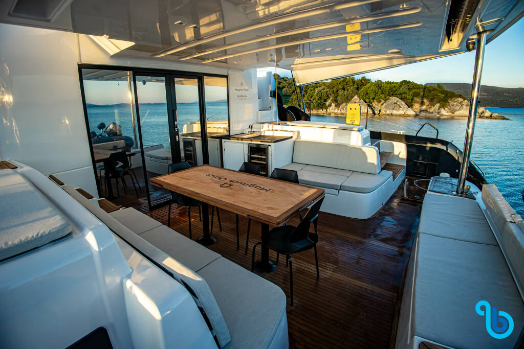 Die Lagoon 50 Magnum Opus (Katamaran), wurde im Jahr 2022 vom Stapel gelassen und befindet sich in Ionisches Meer in der Stadt Preveza, Mytikas. Der Rumpf ist mit 6 + 2 Kabinen und 4 + 2 WCs ausgestattet und ist für die bequeme Unterbringung von 12 + 2 Personen zugelassen.
