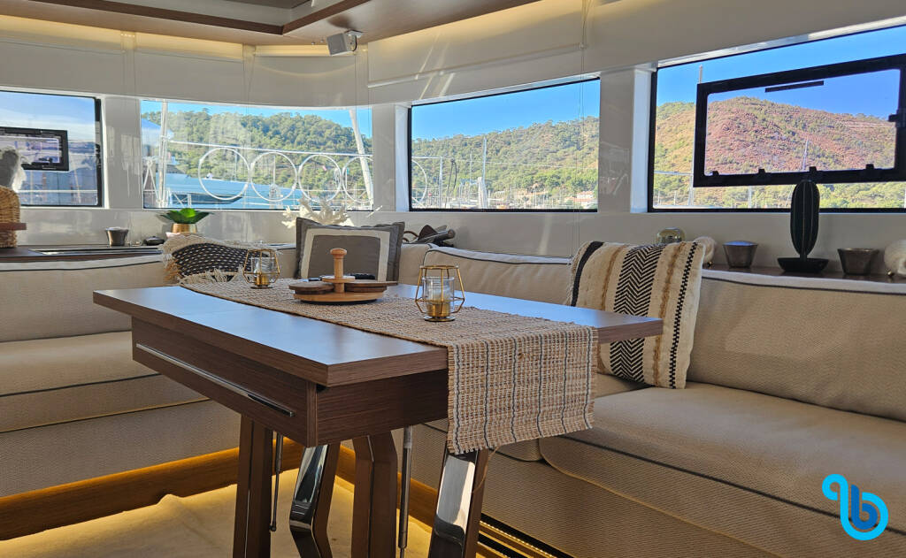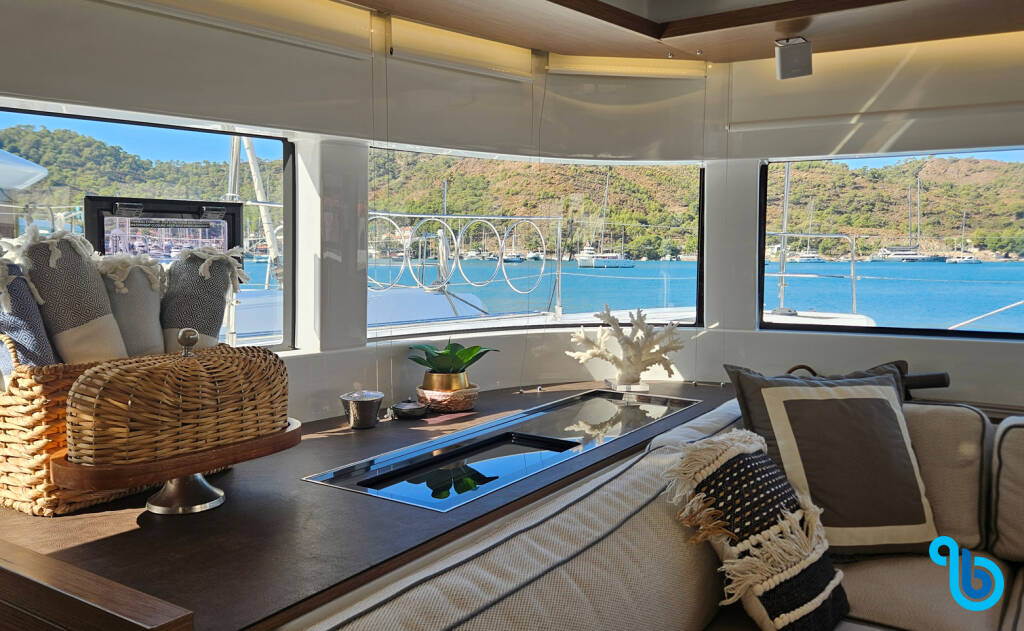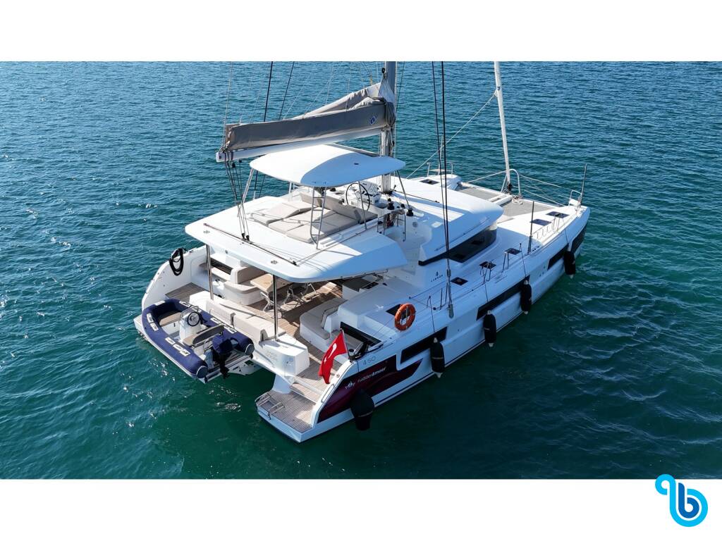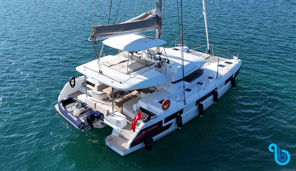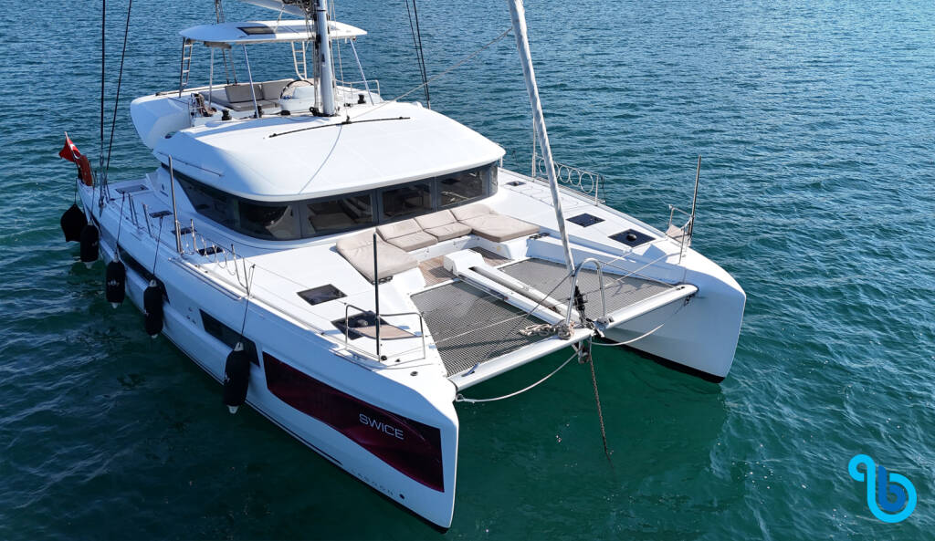 Die Lagoon 50 Swice (Katamaran), wurde im Jahr 2022 vom Stapel gelassen und befindet sich in Türkei Fethiye / Gocek in der Stadt Yacht Club Mai-Fethiye. Der Rumpf ist mit 4 Kabinen und 3 WCs ausgestattet und ist für die bequeme Unterbringung von 8 Personen zugelassen.
