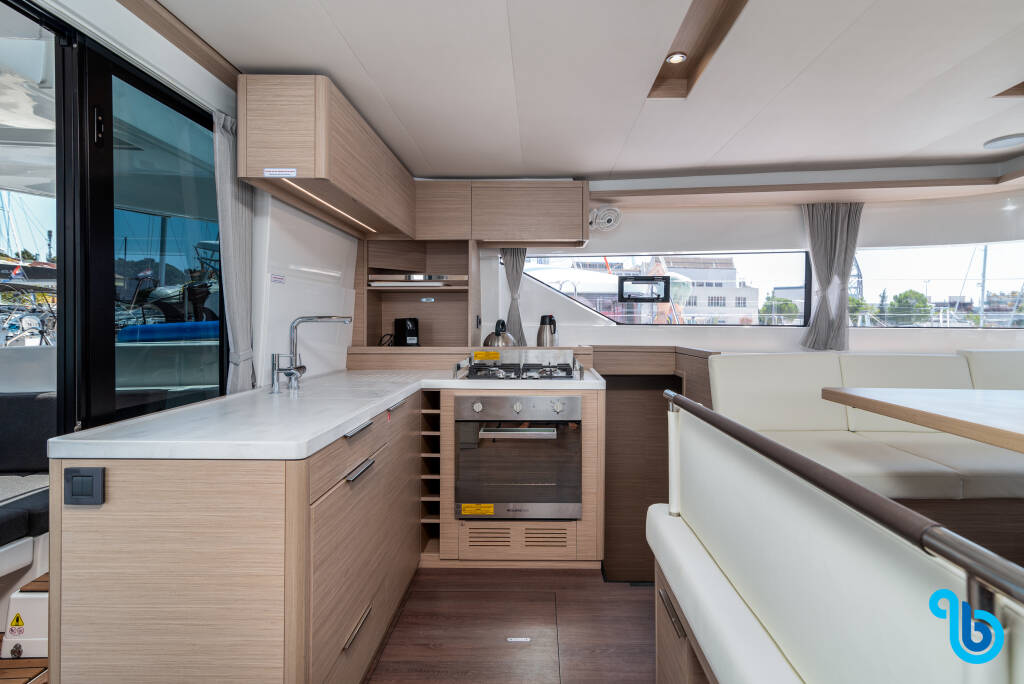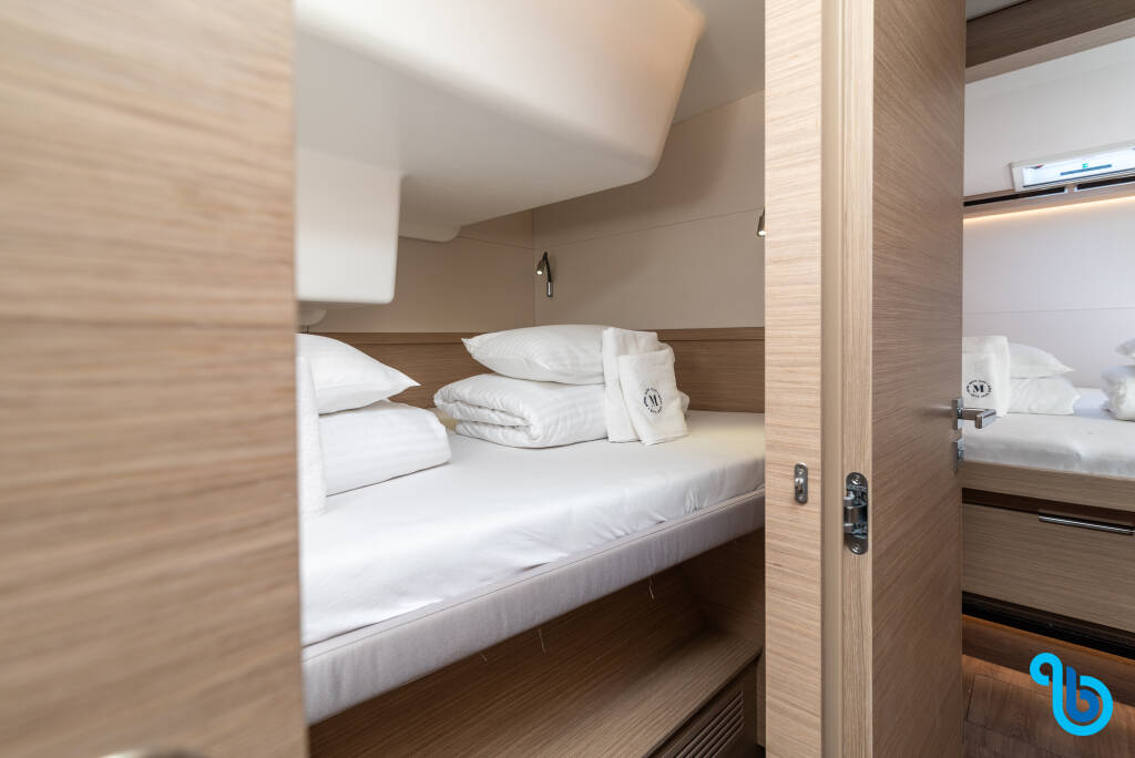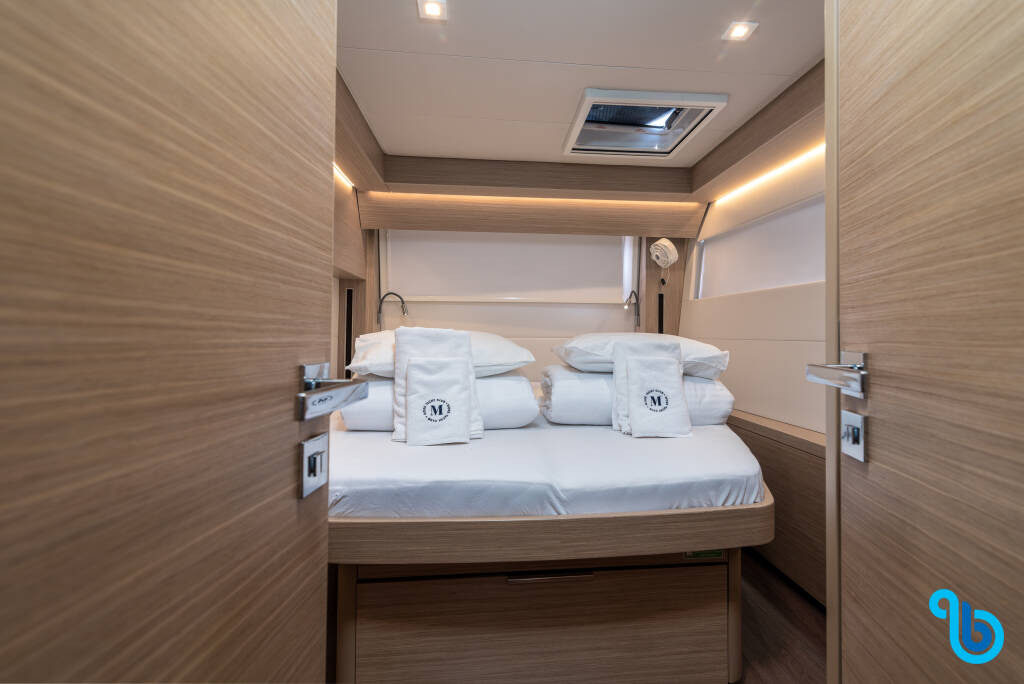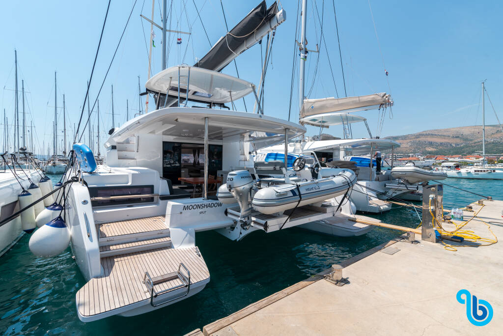 Der Lagoon 51 Moonshadow (Katamaran), wurde ins Leben gerufen 2025 und hat seinen Sitz in Split & Umgebung im Yachthafen der Stadt Trogir, Marina Trogir (ex.SCT). Der Rumpf ist ausgestattet mit 6 + 2 hütten und 4 toilette und ist für eine bequeme Unterbringung zugelassen 12 + 2 menschen .