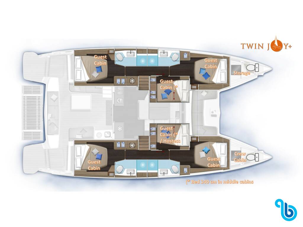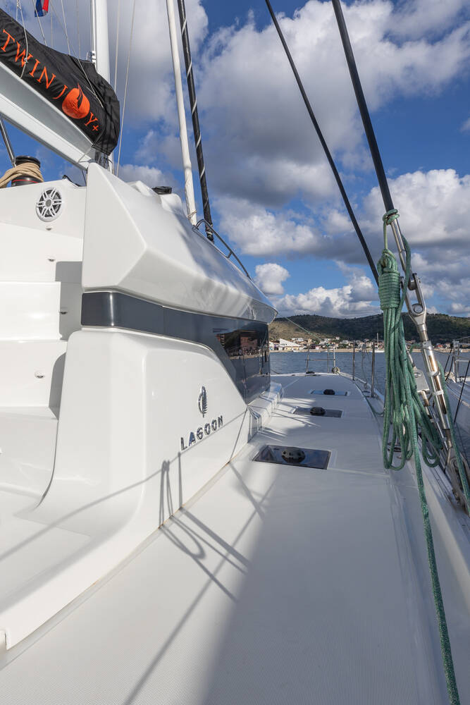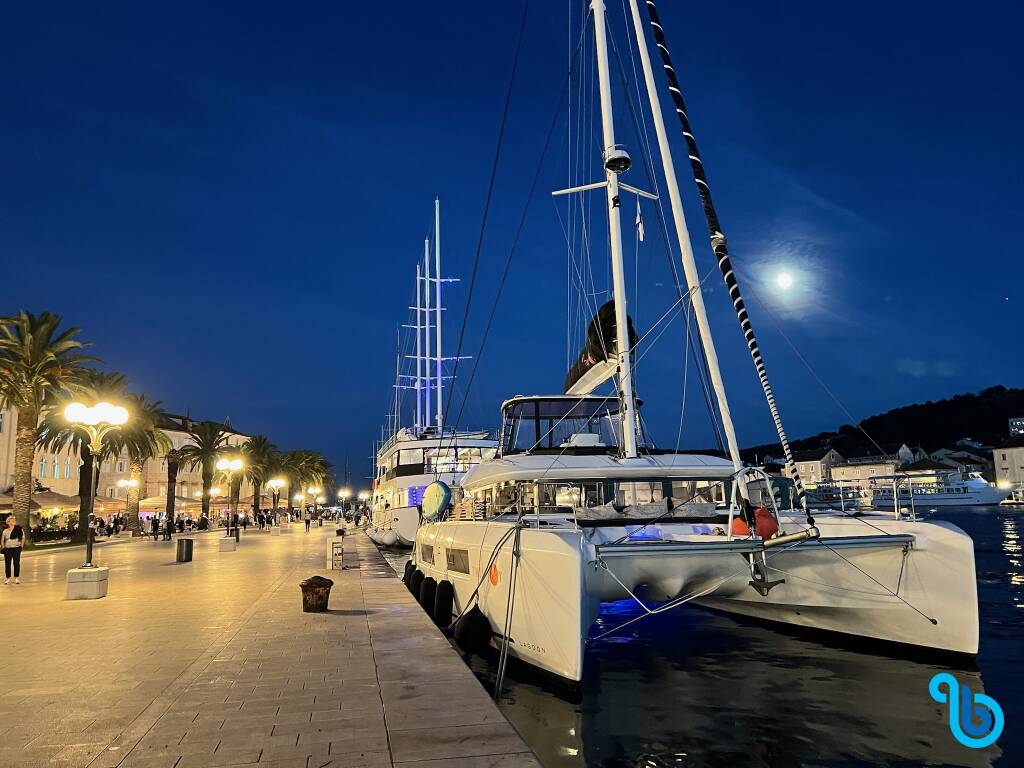 Der Lagoon 51 Twin Joy + (Katamaran), wurde ins Leben gerufen 2024 und hat seinen Sitz in Split & Umgebung im Yachthafen der Stadt Trogir, Marina Trogir (ex.SCT). Der Rumpf ist ausgestattet mit 7 hütten und 5 toilette und ist für eine bequeme Unterbringung zugelassen 11 menschen .