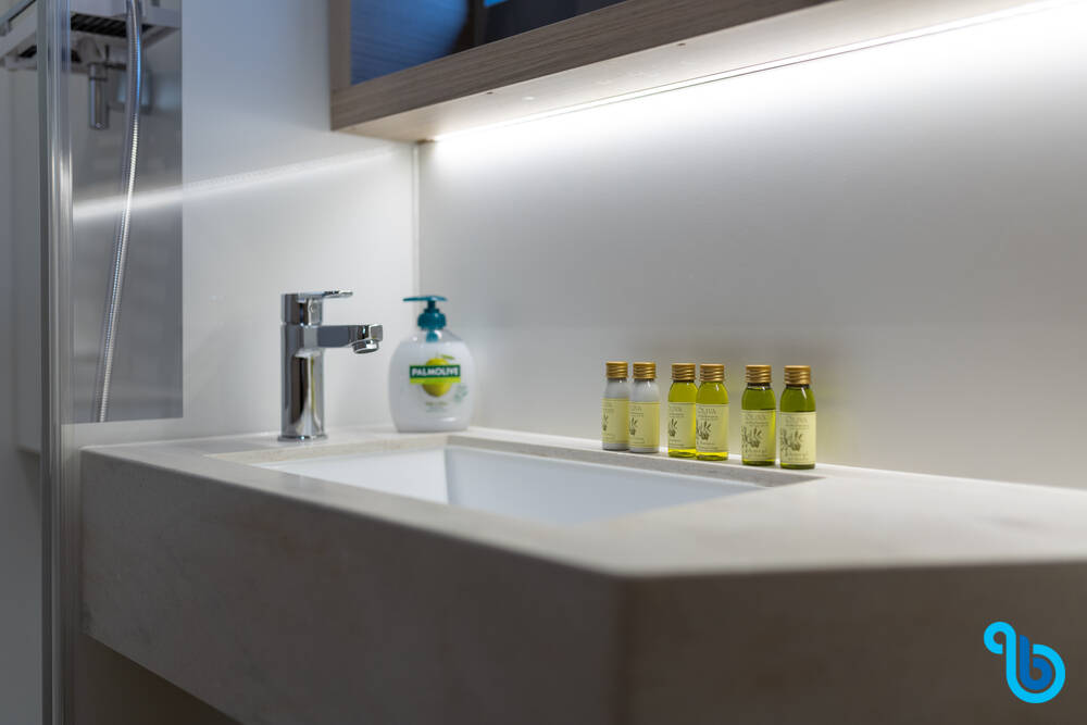 Der Skipper ist nicht im Preis des Bootes enthalten. Es ist möglich, den Skipper während des Bestätigungsverfahrens hinzuzufügen: Die Kosten liegen in der Regel zwischen 180 € und 250 € pro Tag; der Skipper benötigt eine eigene Kabine. Nach Rücksprache mit einem BeBlue-Betreiber ist es möglich, dass der Skipper in der Dinette (zentraler Aufenthaltsraum) schläft.