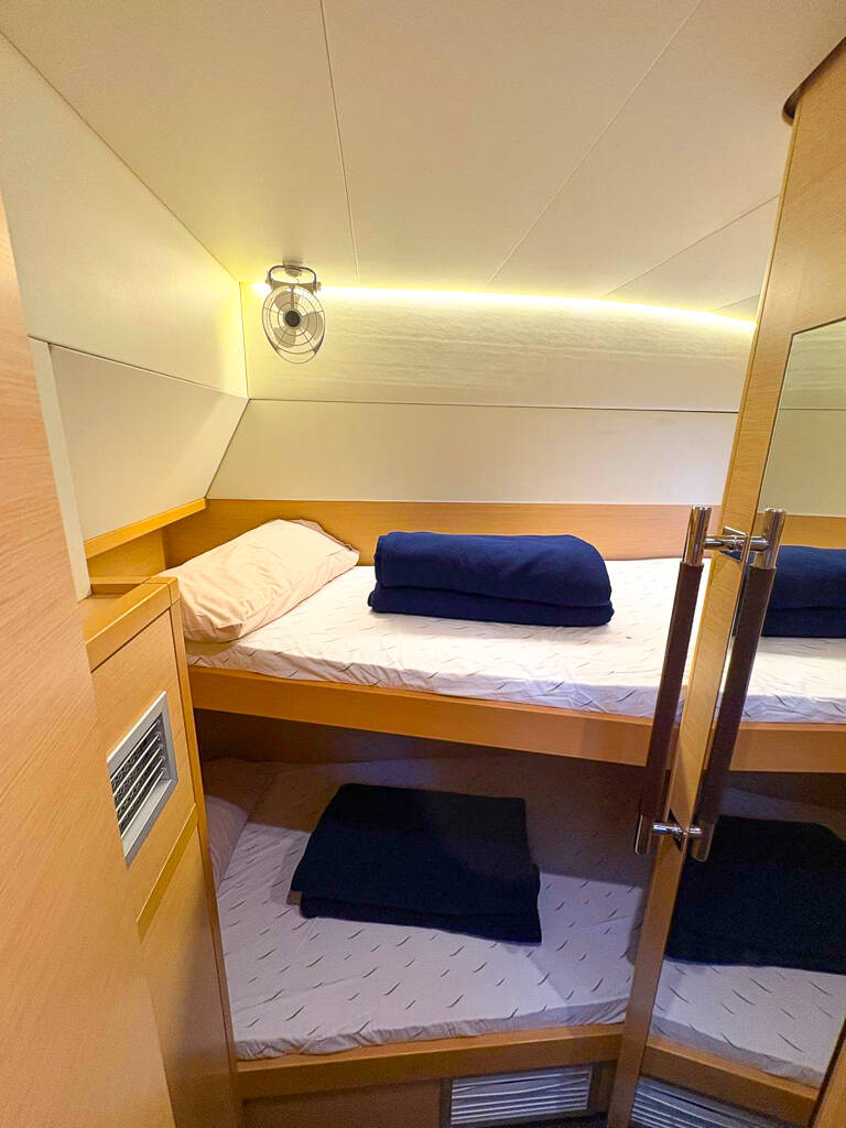Der Skipper ist nicht im Preis des Bootes enthalten. Es ist möglich, den Skipper während des Bestätigungsverfahrens hinzuzufügen: Die Kosten liegen in der Regel zwischen 180 € und 250 € pro Tag; der Skipper benötigt eine eigene Kabine. Nach Rücksprache mit einem BeBlue-Betreiber ist es möglich, dass der Skipper in der Dinette (zentraler Aufenthaltsraum) schläft.