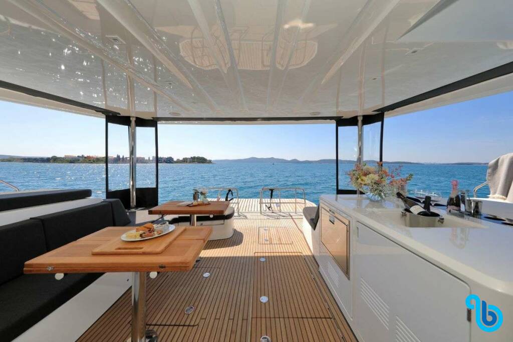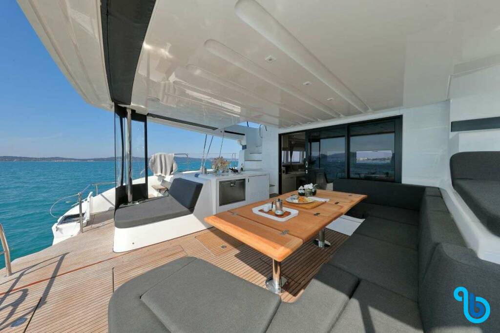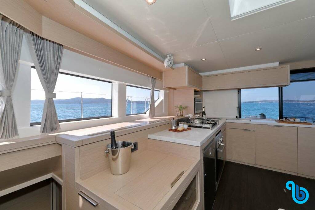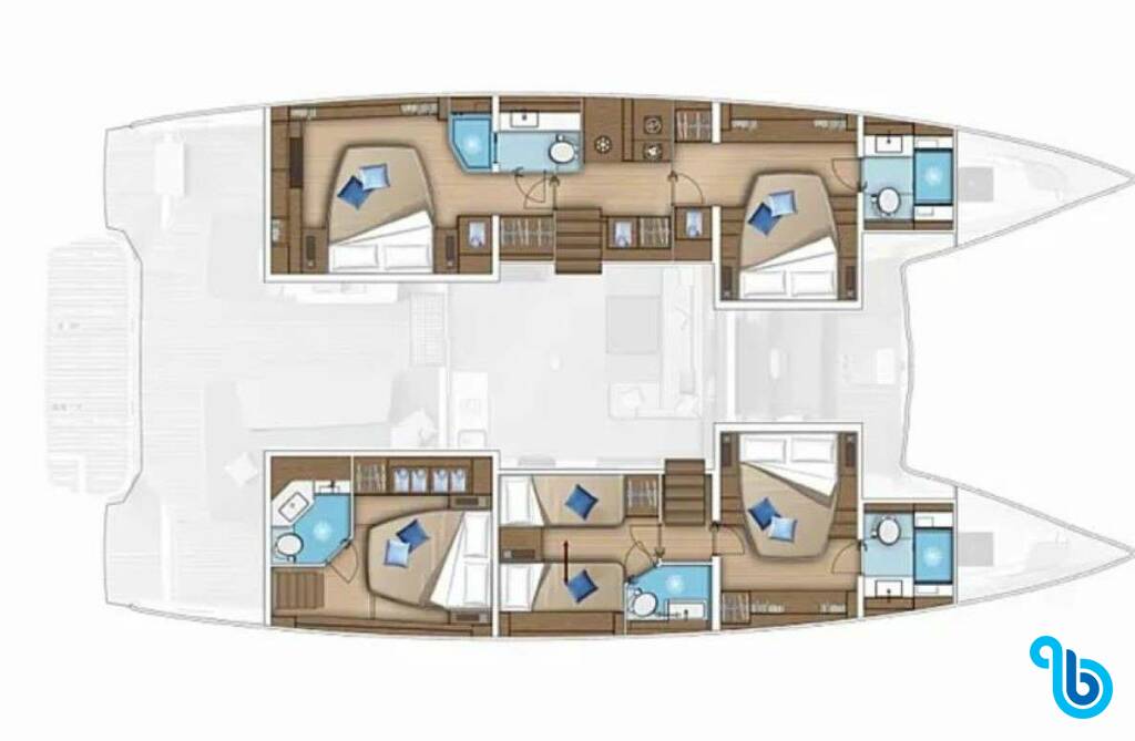 Der Lagoon 55 Champagne (Katamaran), wurde ins Leben gerufen 2024 und hat seinen Sitz in Split & Umgebung im Yachthafen der Stadt Marina Kastela. Der Rumpf ist ausgestattet mit 4 + 2 hütten und 4 toilette und ist für eine bequeme Unterbringung zugelassen 8 + 2 menschen .