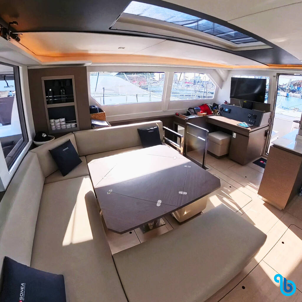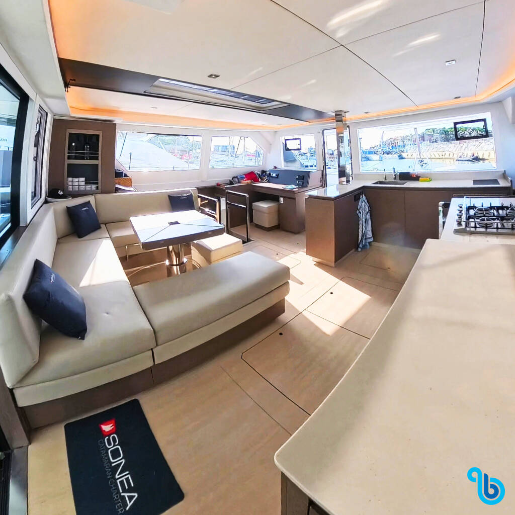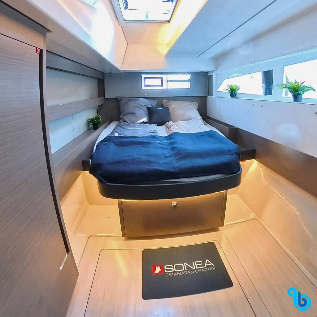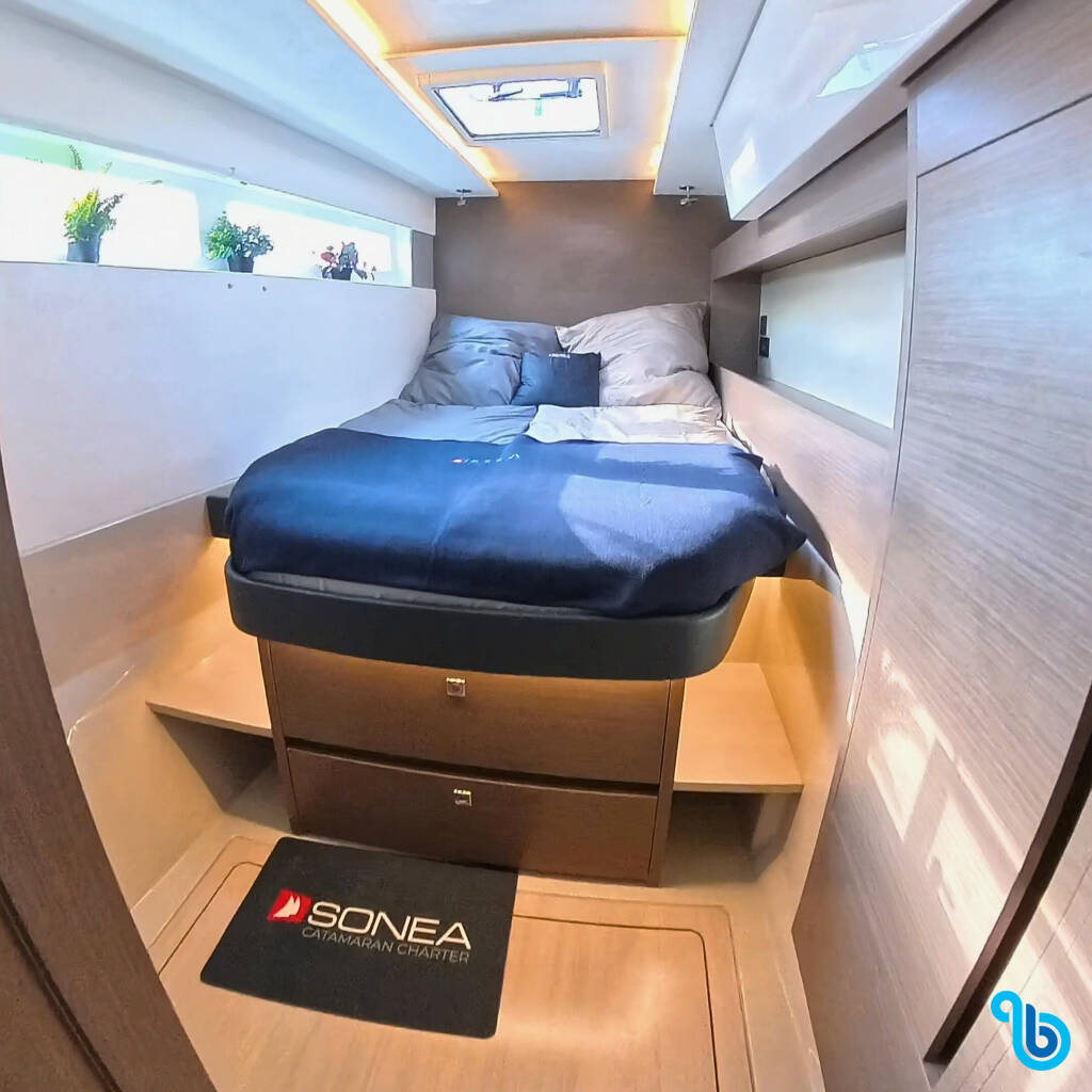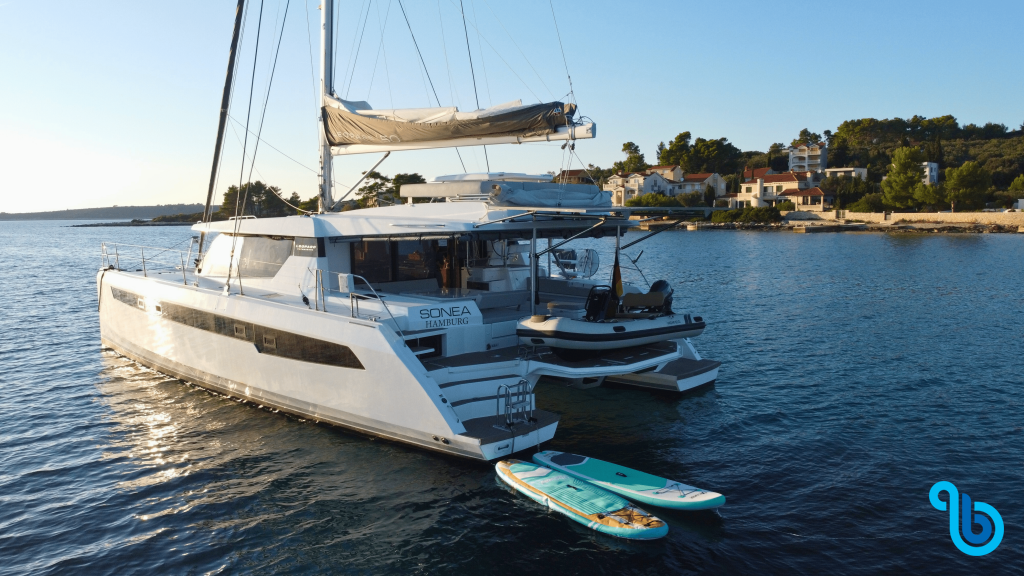 Der Leopard 50 Sonea (Katamaran), wurde ins Leben gerufen 2025 und hat seinen Sitz in Zadar & Umgebung im Yachthafen der Stadt Sukosan, D-Marin Dalmacija Marina. Der Rumpf ist ausgestattet mit 5 + 1 hütten und 4 + 1 toilette und ist für eine bequeme Unterbringung zugelassen 11 + 1 menschen .