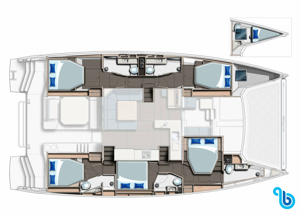 Der Skipper ist nicht im Preis des Bootes enthalten. Es ist möglich, den Skipper während des Bestätigungsverfahrens hinzuzufügen: Die Kosten liegen in der Regel zwischen 180 € und 250 € pro Tag; der Skipper benötigt eine eigene Kabine. Nach Rücksprache mit einem BeBlue-Betreiber ist es möglich, dass der Skipper in der Dinette (zentraler Aufenthaltsraum) schläft.