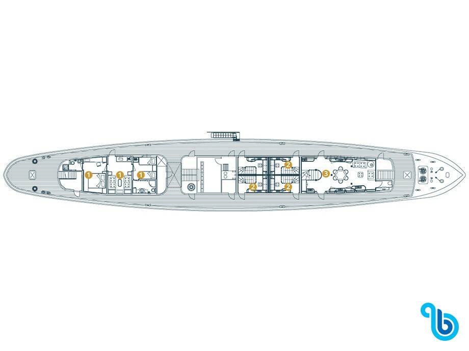 Der Skipper ist nicht im Preis des Bootes enthalten. Es ist möglich, den Skipper während des Bestätigungsverfahrens hinzuzufügen: Die Kosten liegen in der Regel zwischen 180 € und 250 € pro Tag; der Skipper benötigt eine eigene Kabine. Nach Rücksprache mit einem BeBlue-Betreiber ist es möglich, dass der Skipper in der Dinette (zentraler Aufenthaltsraum) schläft.