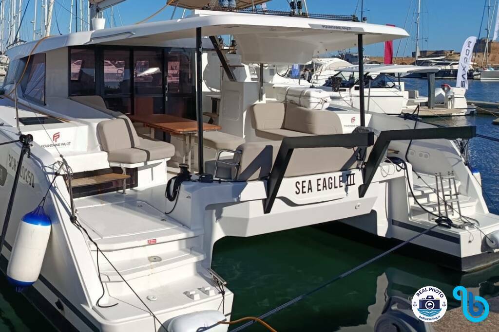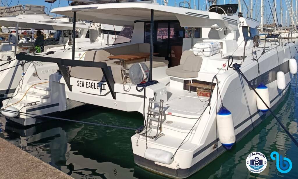 Die New 41 SEA EAGLE III (Katamaran), wurde im Jahr 2025 vom Stapel gelassen und befindet sich in Apulia in der Stadt Rodi Garganico. Der Rumpf ist mit 6 Kabinen und 4 WCs ausgestattet und ist für die bequeme Unterbringung von 8 + 2 Personen zugelassen.