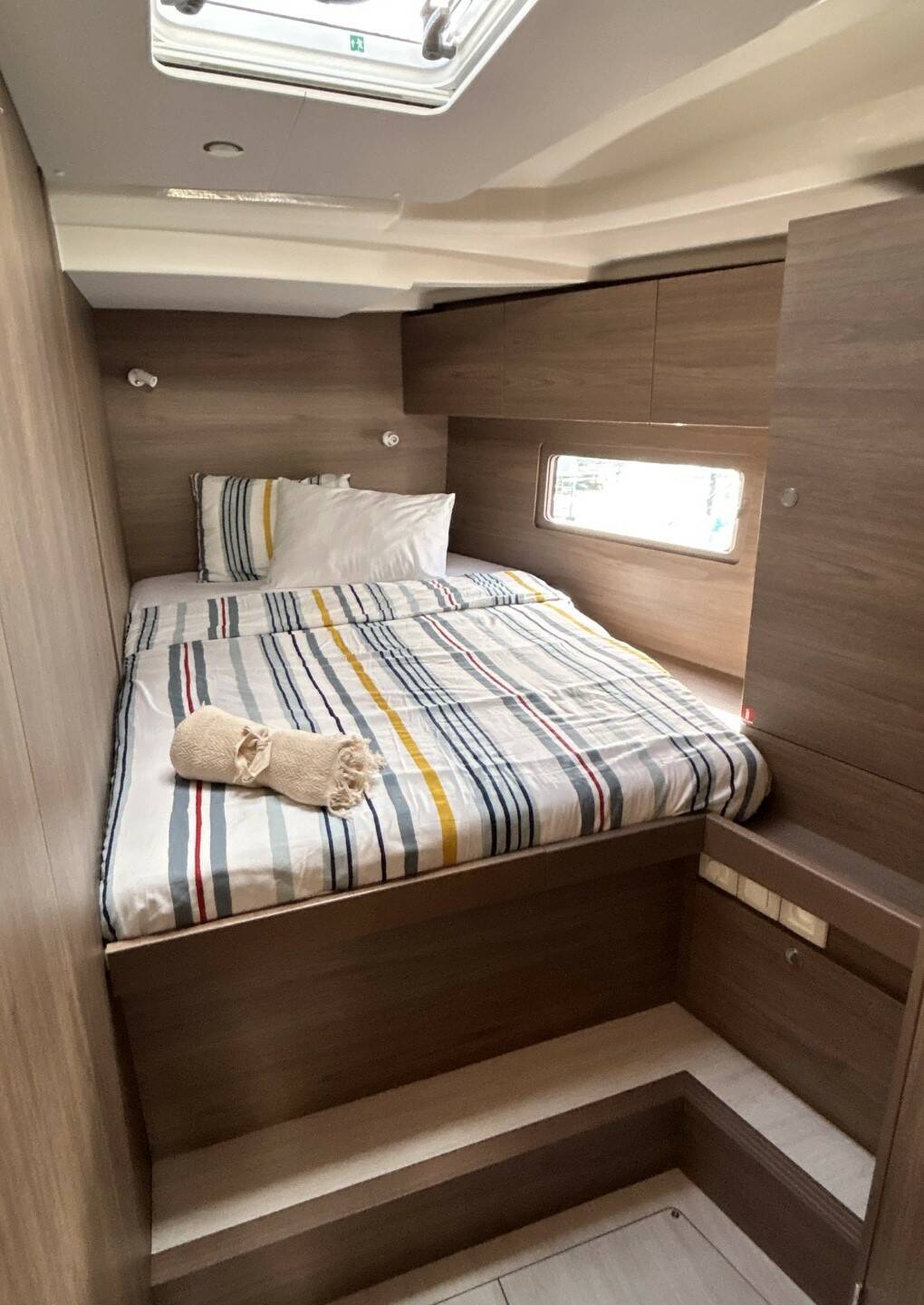 Der Skipper ist nicht im Preis des Bootes enthalten. Es ist möglich, den Skipper während des Bestätigungsverfahrens hinzuzufügen: Die Kosten liegen in der Regel zwischen 180 € und 250 € pro Tag; der Skipper benötigt eine eigene Kabine. Nach Rücksprache mit einem BeBlue-Betreiber ist es möglich, dass der Skipper in der Dinette (zentraler Aufenthaltsraum) schläft.