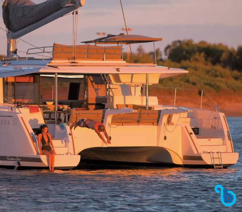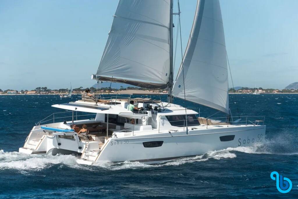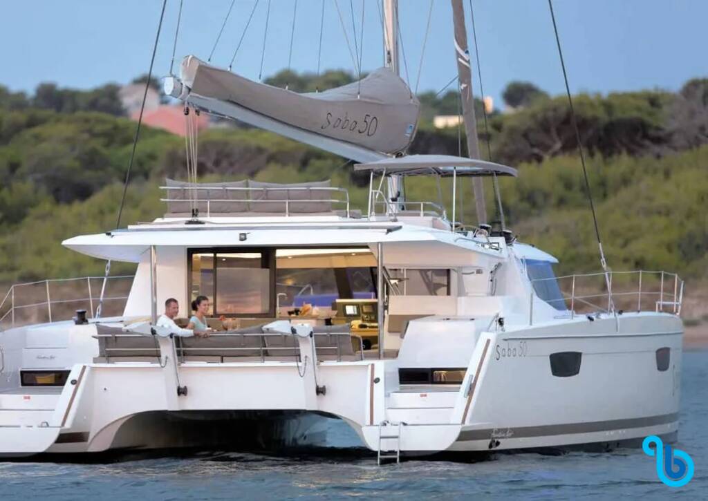 Die Saba 50 Bicos (Katamaran), wurde im Jahr 2015 vom Stapel gelassen und befindet sich in Türkei Fethiye / Gocek in der Stadt Yacht Club Mai-Fethiye. Der Rumpf ist mit 6 Kabinen und 6 WCs ausgestattet und ist für die bequeme Unterbringung von 13 Personen zugelassen.