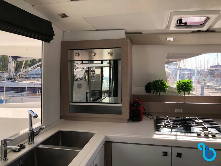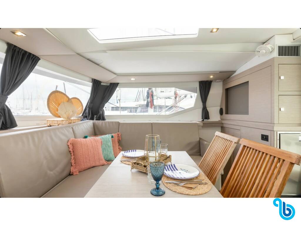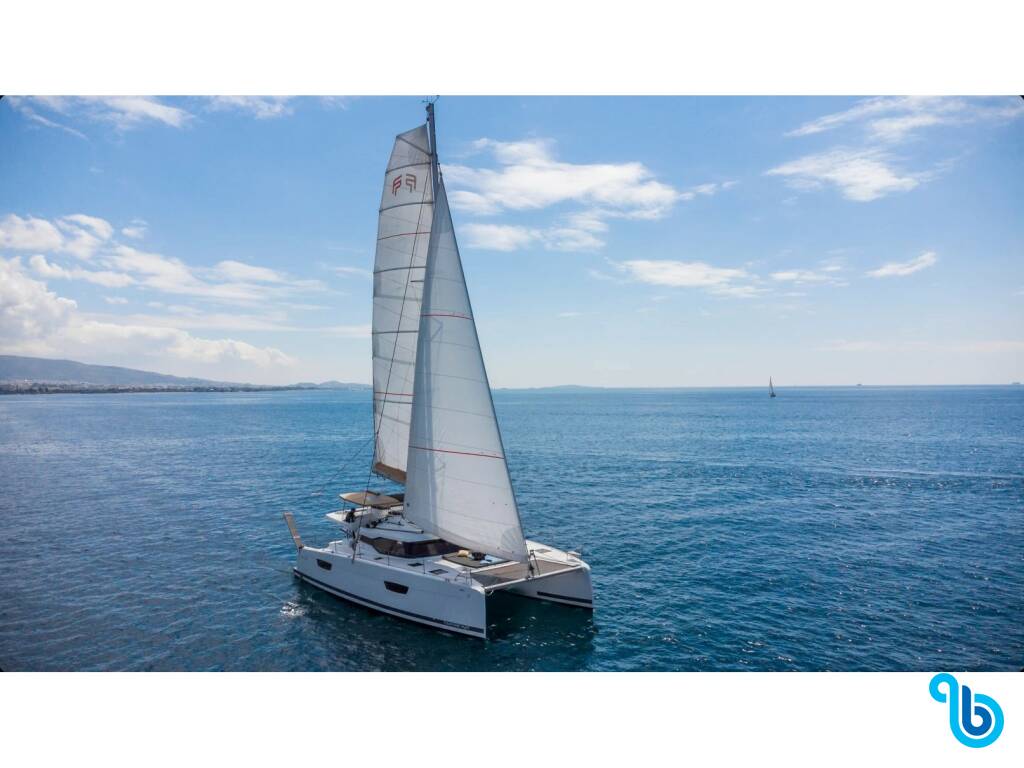 Der Saona 47 NEFELI (Katamaran), wurde ins Leben gerufen 2020 und hat seinen Sitz in Griechenland - Athen im Yachthafen der Stadt Athens, Alimos marina. Der Rumpf ist ausgestattet mit 6 hütten und 5 toilette und ist für eine bequeme Unterbringung zugelassen 12 menschen .
