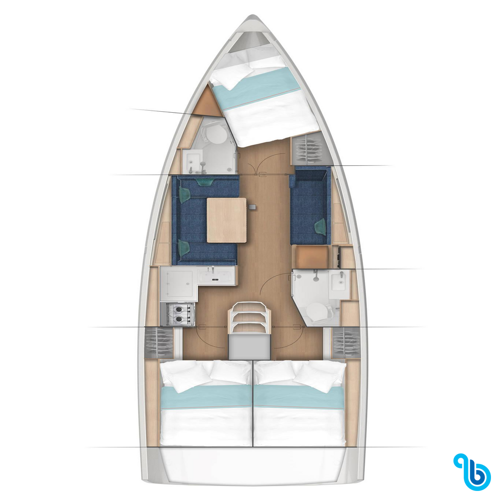 Der Skipper ist nicht im Preis des Bootes enthalten. Es ist möglich, den Skipper während des Bestätigungsverfahrens hinzuzufügen: Die Kosten liegen in der Regel zwischen 180 € und 250 € pro Tag; der Skipper benötigt eine eigene Kabine. Nach Rücksprache mit einem BeBlue-Betreiber ist es möglich, dass der Skipper in der Dinette (zentraler Aufenthaltsraum) schläft.