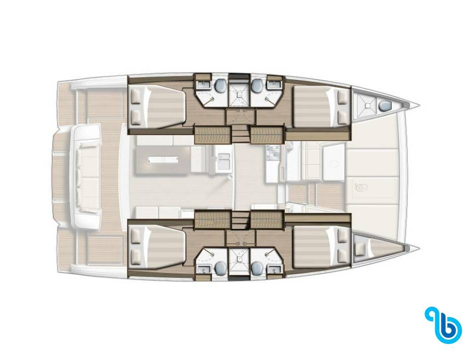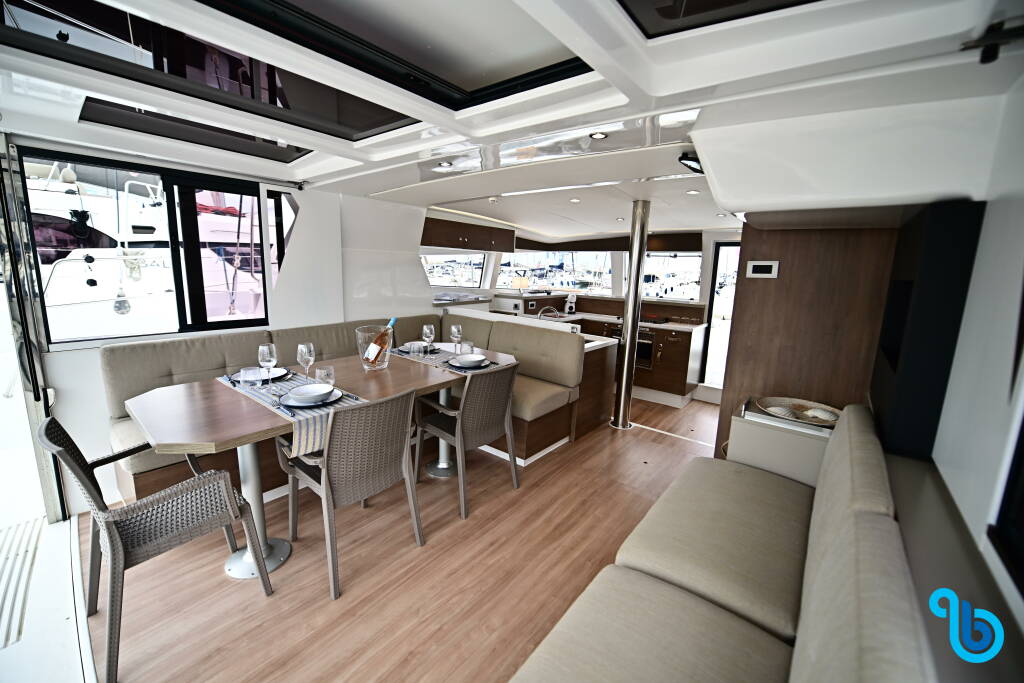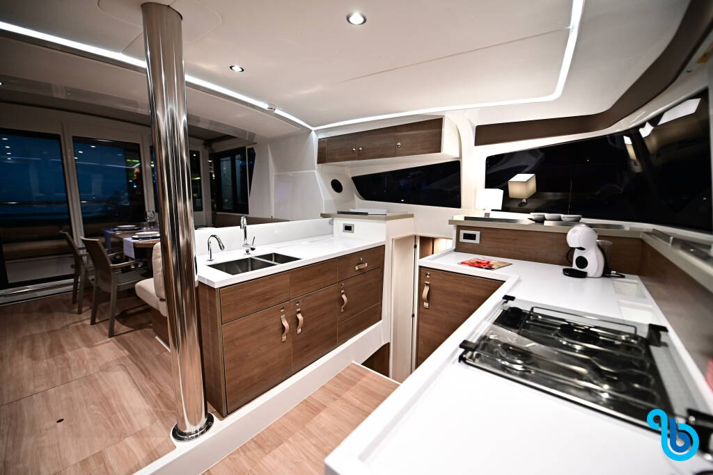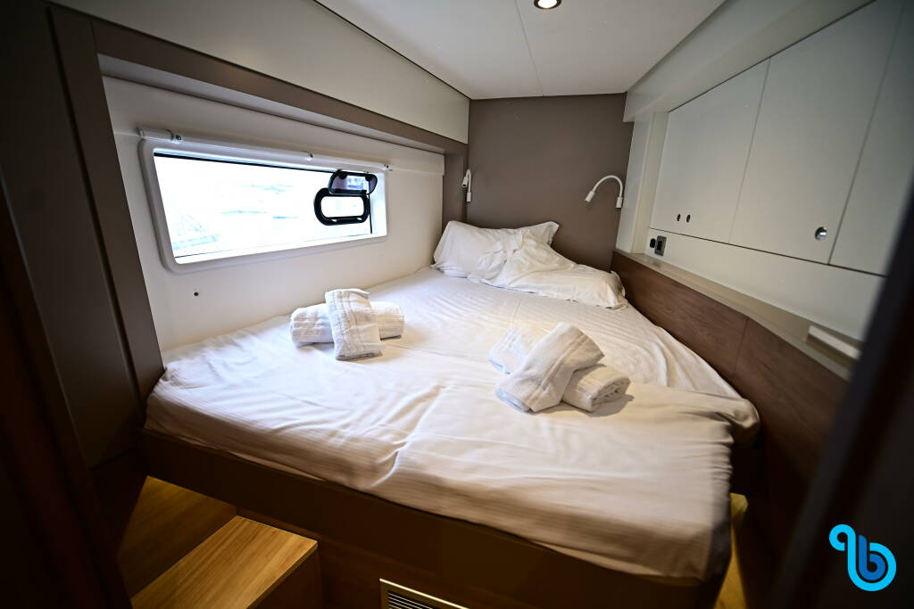 Bali 4.2 Res23 (Catamaran),was launched in 2023 and is based in Italy - North Sardinia at Portisco Marina. The hull is equipped with 4 + 1 cabins and 4 + 1 wc and comfortably can host 8 + 1 people.