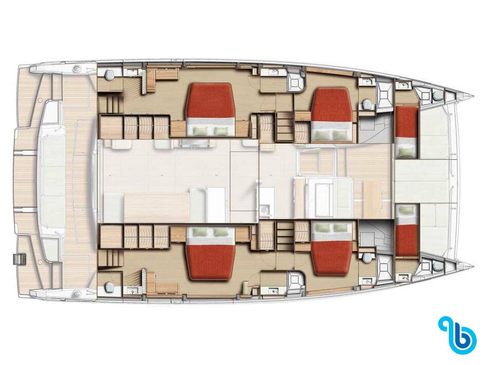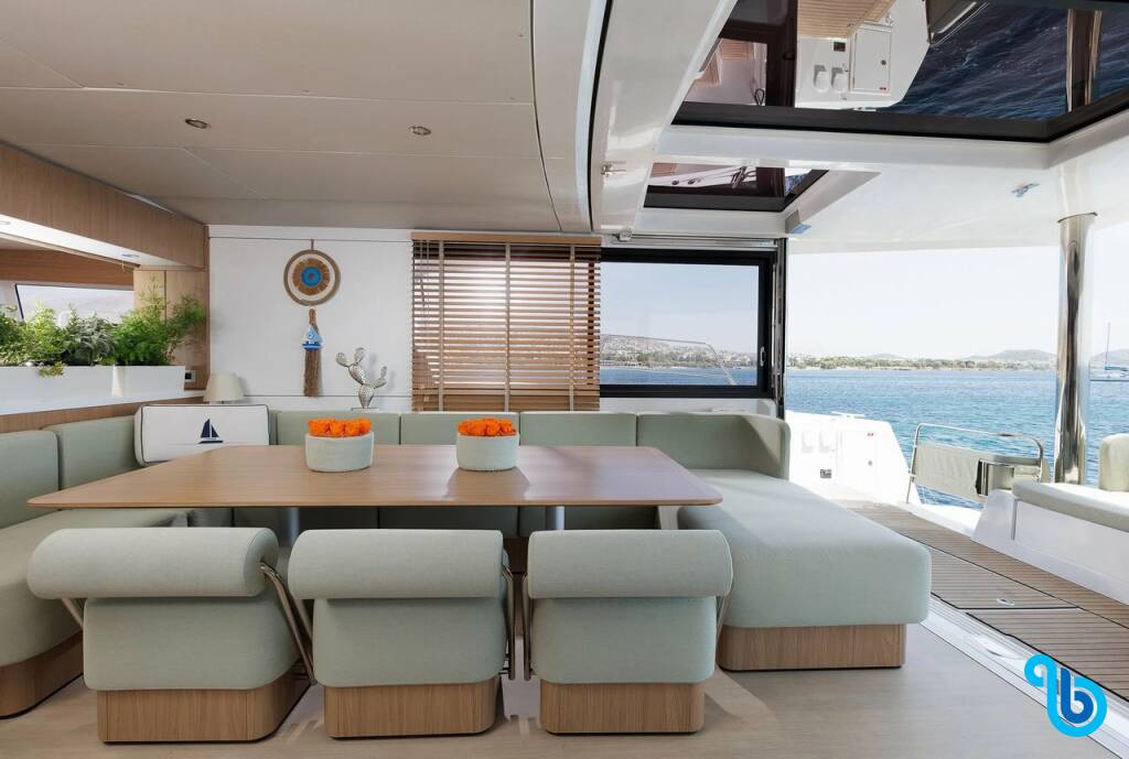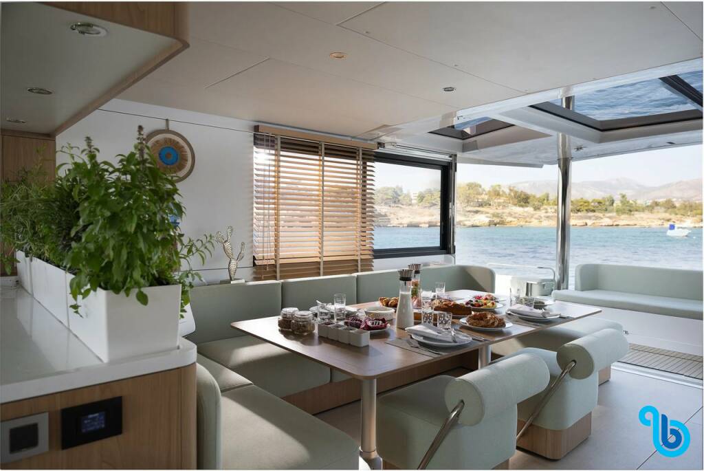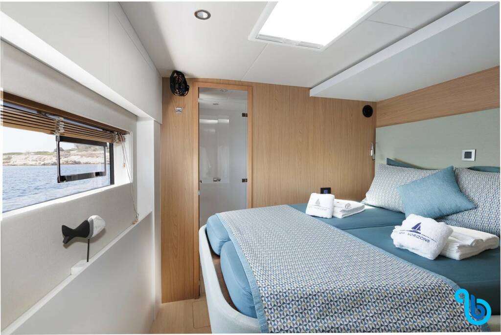 Bali 5.8 New Horizons 4 (Catamaran),was launched in 2025 and is based in Greece - Athens at Athens, Alimos Kalamaki. The hull is equipped with 4 cabins and 4 wc and comfortably can host 8 people.