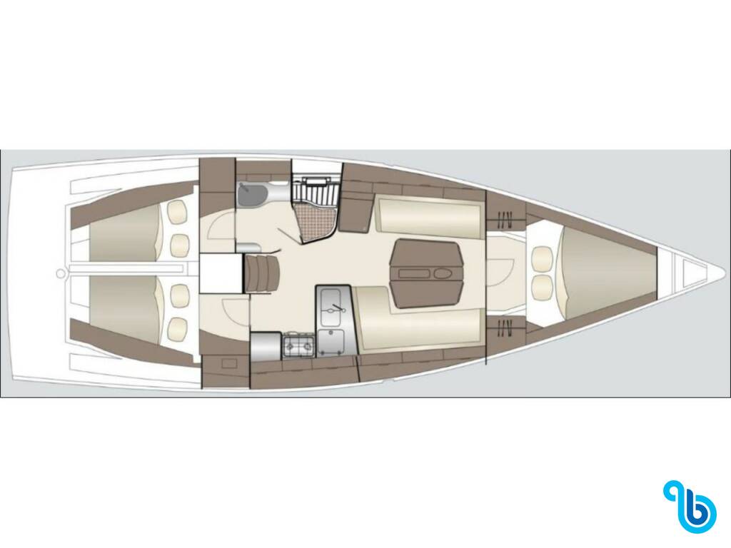 Dehler 38 SQ Just B! (Sailing yacht),was launched in 2026 and is based in Croatia - Kvarner at Krk, Marina Punat. The hull is equipped with 3 cabins and 1 wc and comfortably can host 6 people.