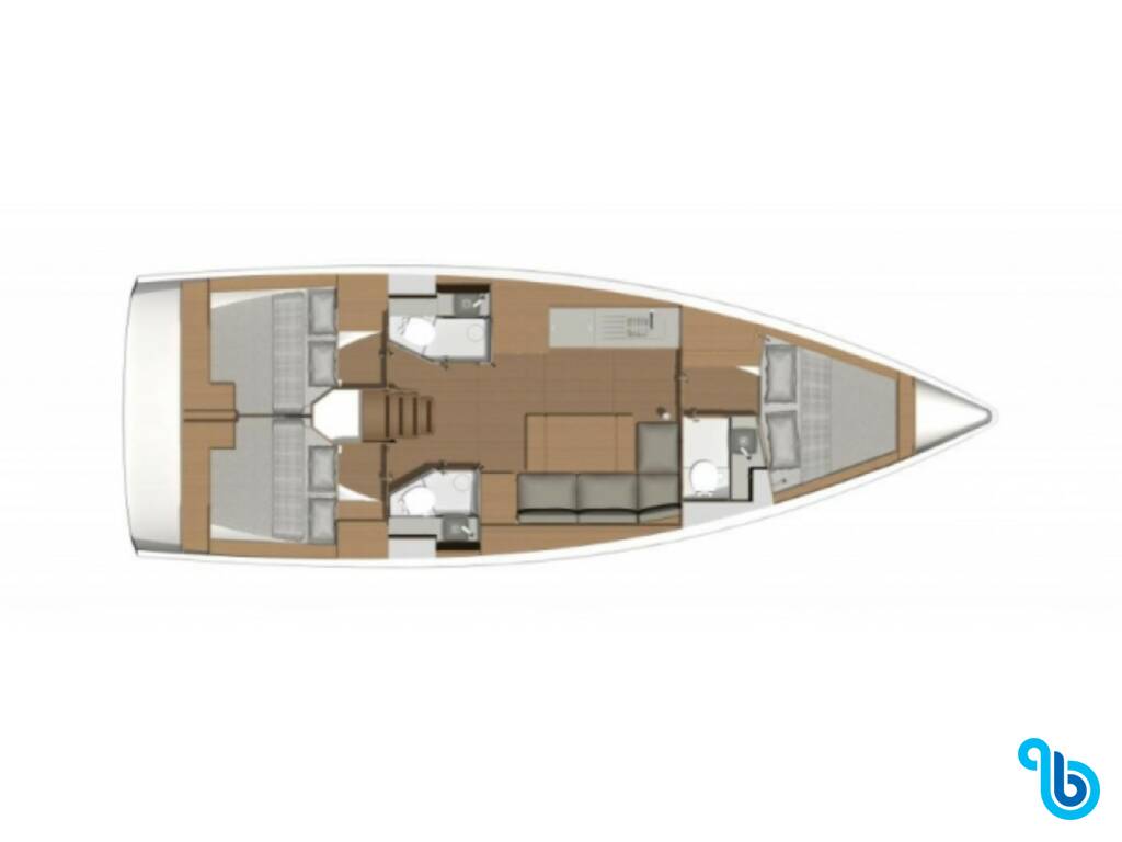 Dufour 390 Grand Large Maestro ( The boat is located in the Port of Sivota, Lefkada ) (Sailing yacht),was launched in 2021 and is based in Greece - South Ionian Islands at Lefkas, Sivota Marina. The hull is equipped with 3 cabins and 3 wc and comfortably can host 8 people.