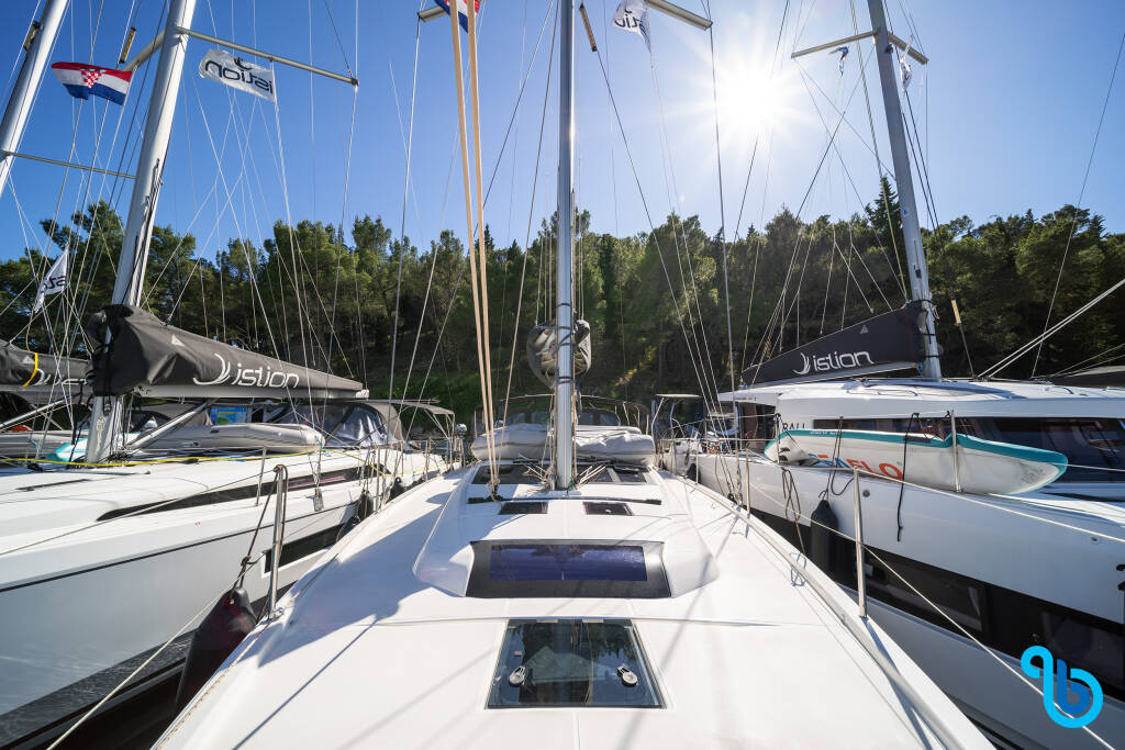 Dufour 430 Grand Large FIRST LOVE (Sailing yacht),was launched in 2023 and is based in Croatia - Sibenik at Skradin, ACI Marina . The hull is equipped with 4 cabins and 2 wc and comfortably can host 8 people.
