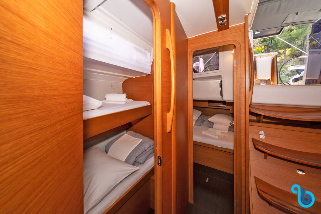 The skipper is not included in the boat price. It will be possible to add the skipper during the confirmation procedure: the cost is usually between €180 and €250 per day plus food; the skipper requires a dedicated cabin. After checking with a BeBlue operator, it will be possible to request that the skipper sleeps in the dinette (central lounge).