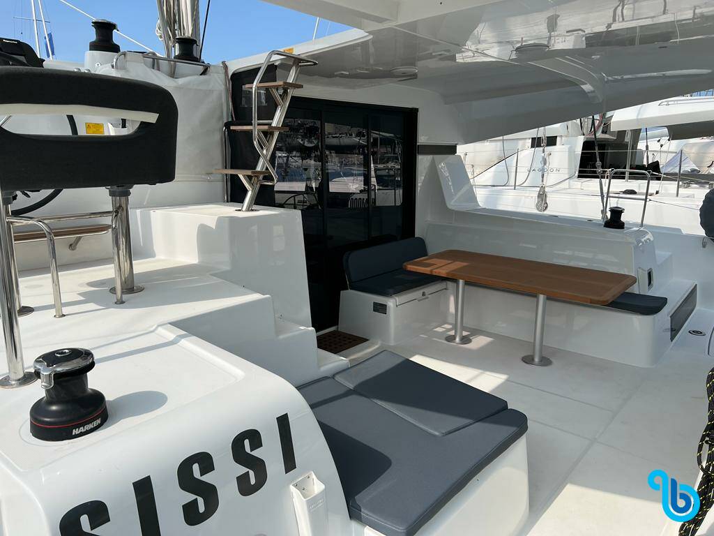 Lagoon 42 SISSI (Catamaran),was launched in 2023 and is based in Italy - Sicily, Eolie at Capo d'Orlando Marina. The hull is equipped with 6 cabins and 4 wc and comfortably can host 12 people.