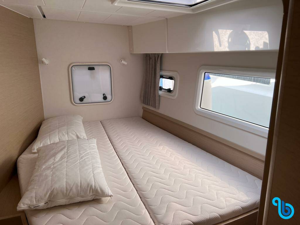 The skipper is not included in the boat price. It will be possible to add the skipper during the confirmation procedure: the cost is usually between €180 and €250 per day plus food; the skipper requires a dedicated cabin. After checking with a BeBlue operator, it will be possible to request that the skipper sleeps in the dinette (central lounge).