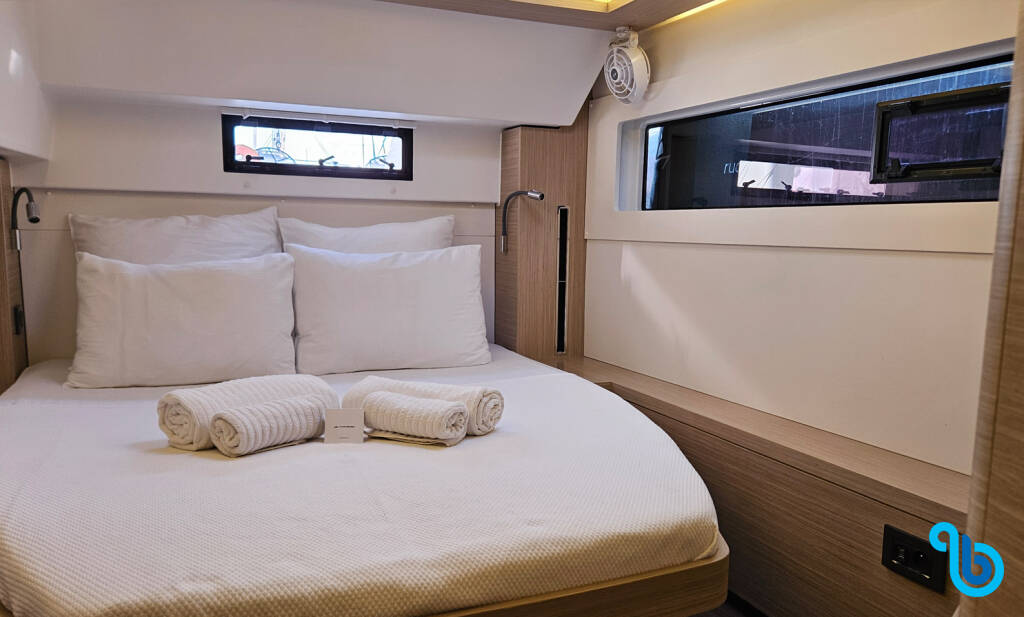 The skipper is not included in the boat price. It will be possible to add the skipper during the confirmation procedure: the cost is usually between €180 and €250 per day plus food; the skipper requires a dedicated cabin. After checking with a BeBlue operator, it will be possible to request that the skipper sleeps in the dinette (central lounge).