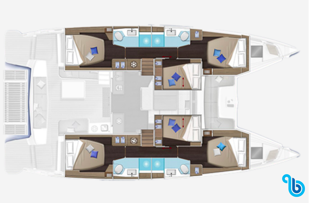 Lagoon 51 PRESTIGE (Catamaran),was launched in 2026 and is based in Greece - Athens at Athens, Alimos Kalamaki. The hull is equipped with 4 + 2 cabins and 4 wc and comfortably can host 8 + 2 + 2 people.