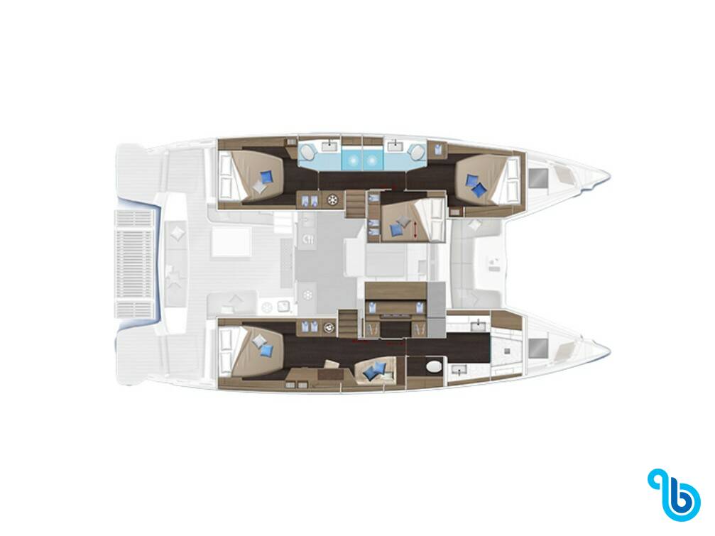 Lagoon 51 ZIG (Catamaran),was launched in 2024 and is based in Brazil - Rio de Janeiro at Rio de Janeiro, Paraty. The hull is equipped with 4 cabins and 4 wc and comfortably can host 8 people.