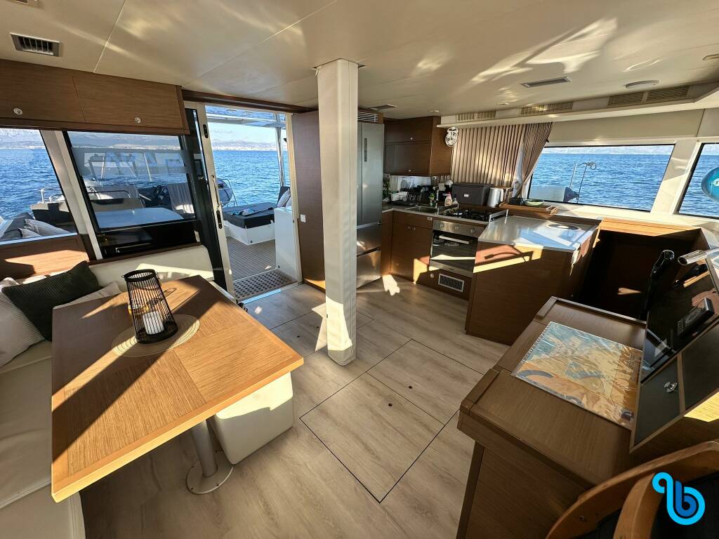 The skipper is not included in the boat price. It will be possible to add the skipper during the confirmation procedure: the cost is usually between €180 and €250 per day plus food; the skipper requires a dedicated cabin. After checking with a BeBlue operator, it will be possible to request that the skipper sleeps in the dinette (central lounge).