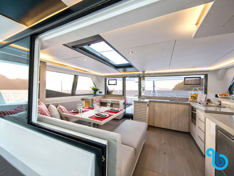 The skipper is not included in the boat price. It will be possible to add the skipper during the confirmation procedure: the cost is usually between €180 and €250 per day plus food; the skipper requires a dedicated cabin. After checking with a BeBlue operator, it will be possible to request that the skipper sleeps in the dinette (central lounge).