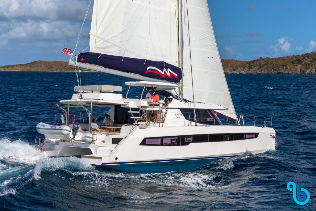 Moorings 4500L (Catamaran),was launched in 2022 and is based in Caribbean - British Virgin Islands at Road Town, The Moorings . The hull is equipped with 5 cabins and 4 wc and comfortably can host 6 people.