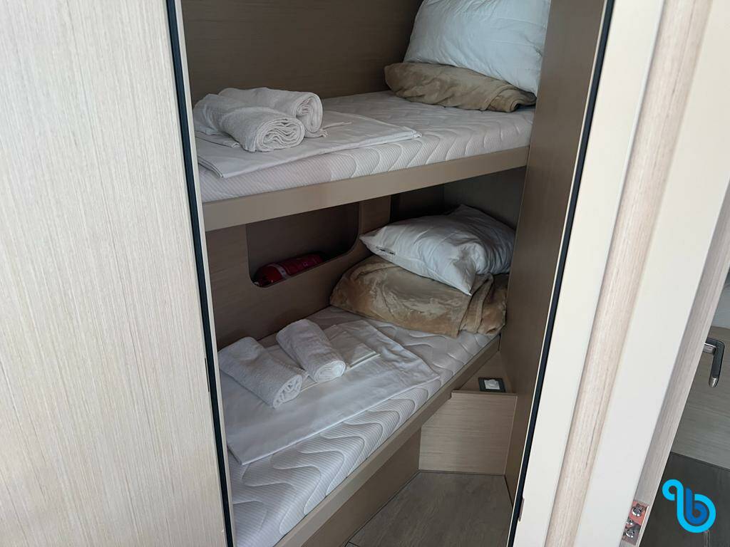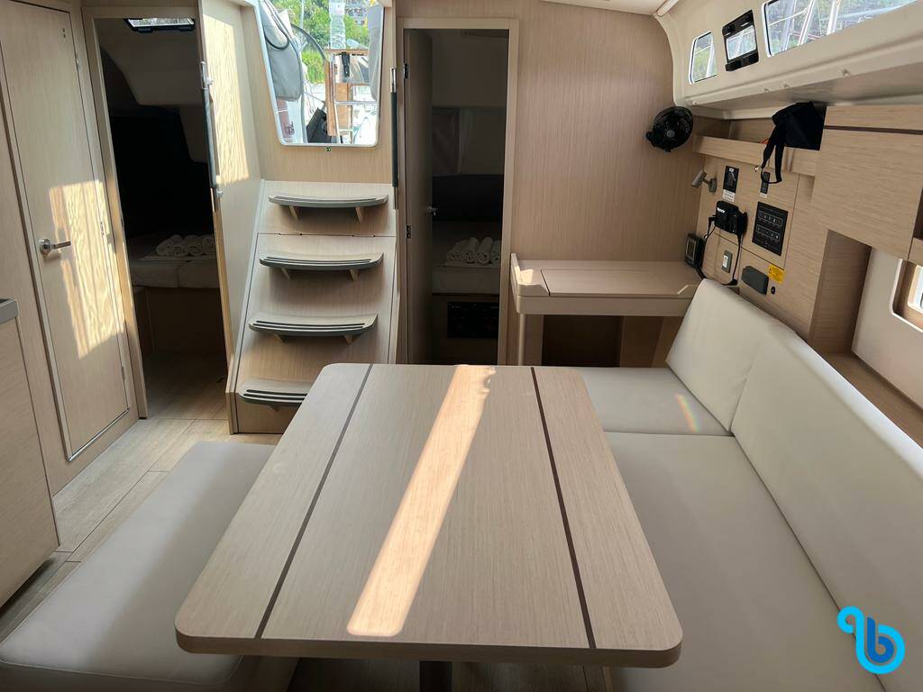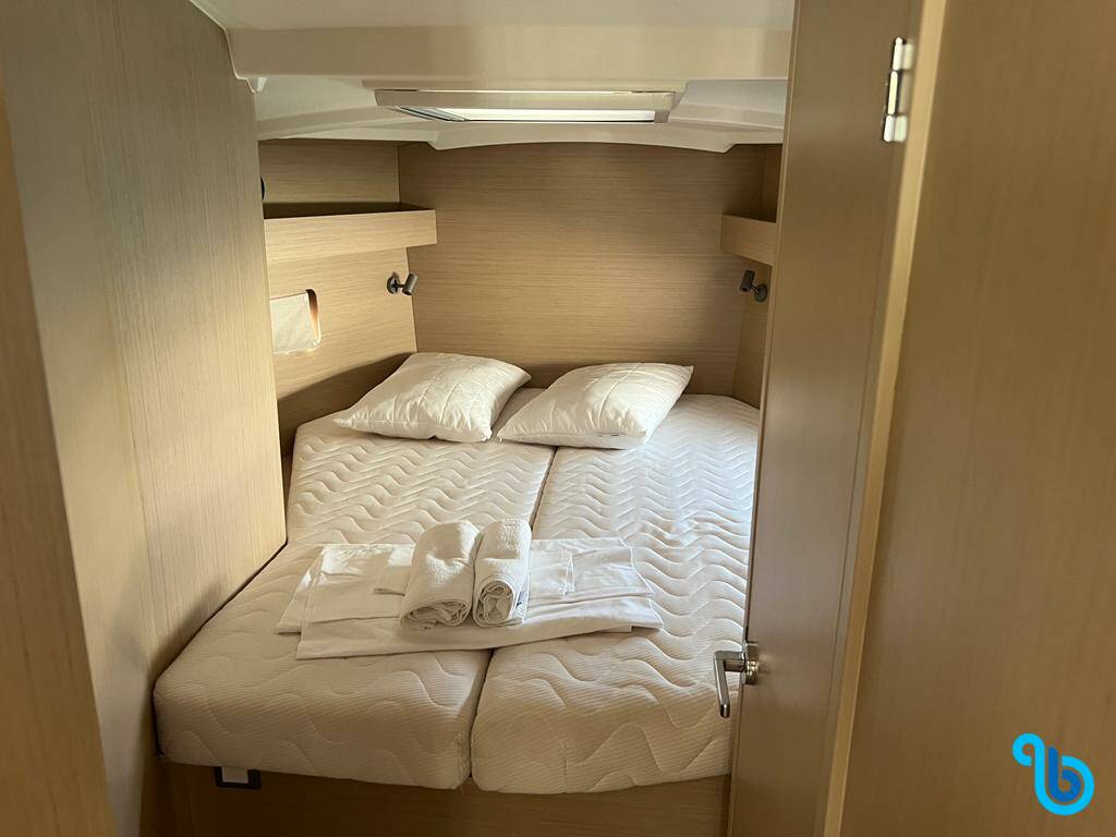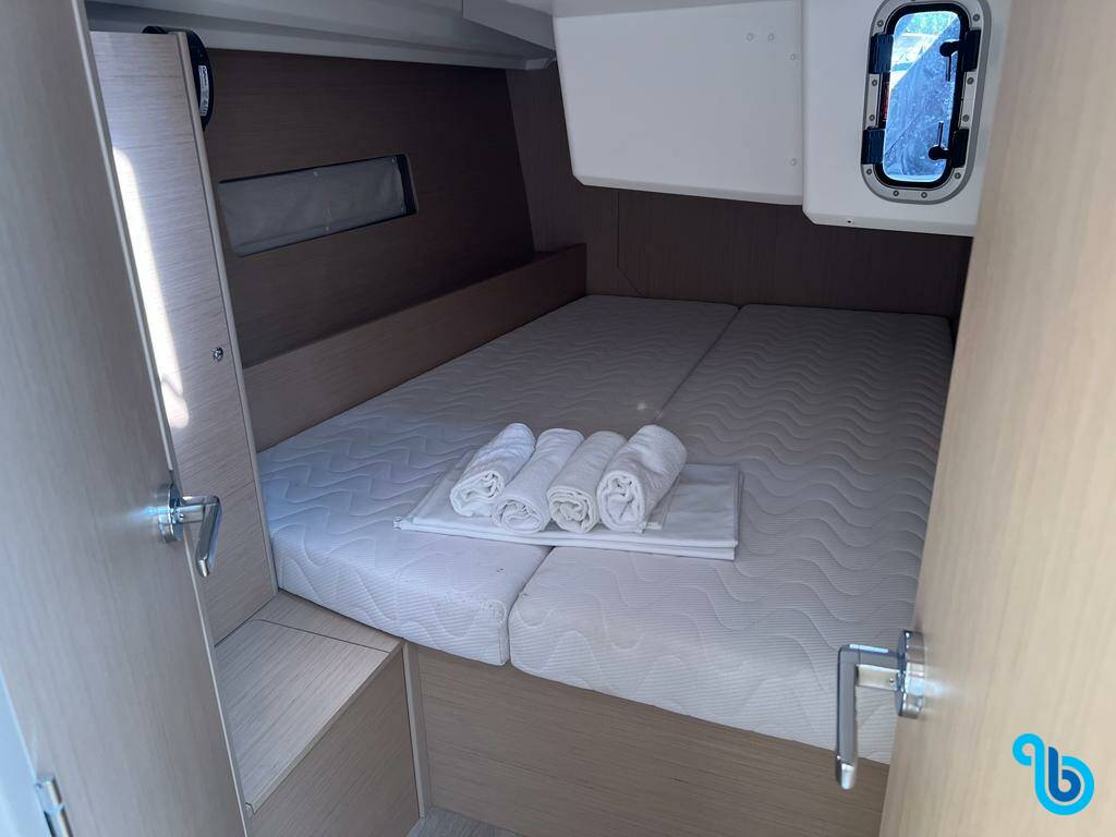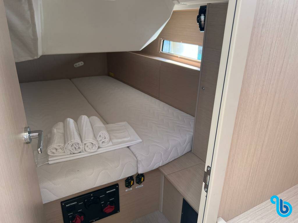 The skipper is not included in the boat price. It will be possible to add the skipper during the confirmation procedure: the cost is usually between €180 and €250 per day plus food; the skipper requires a dedicated cabin. After checking with a BeBlue operator, it will be possible to request that the skipper sleeps in the dinette (central lounge).